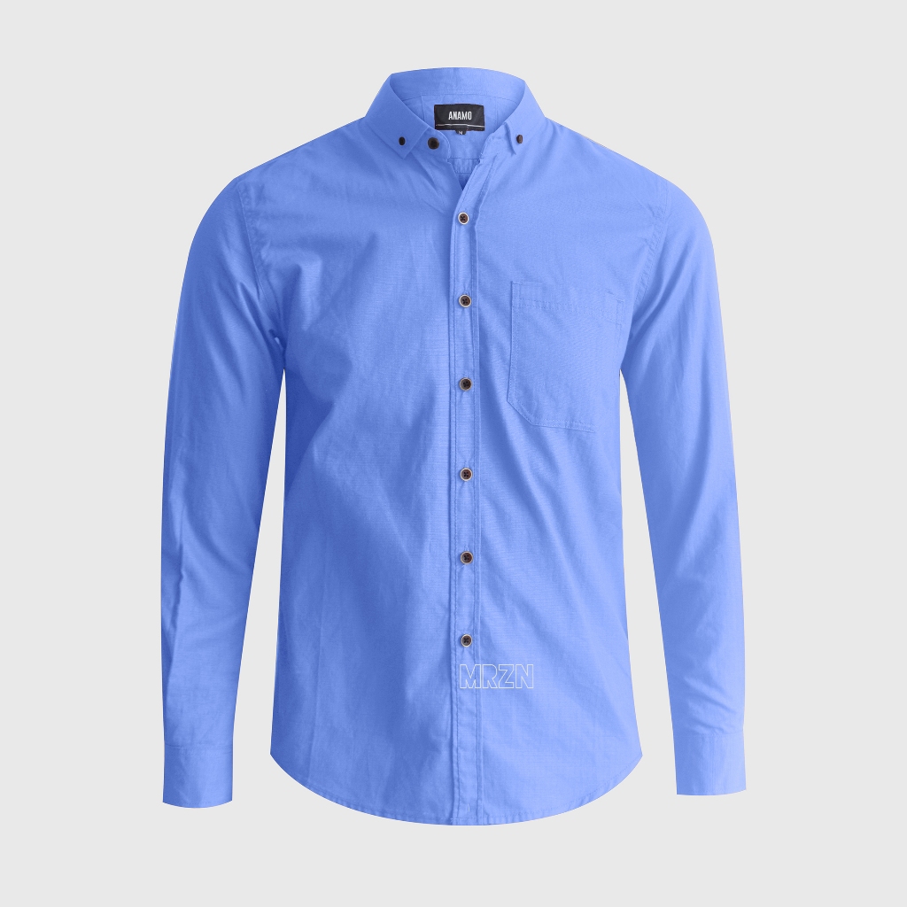 AHLAMI X ANAMO - KEMEJA POLOS PRIA PANJANG BLUE DENIM