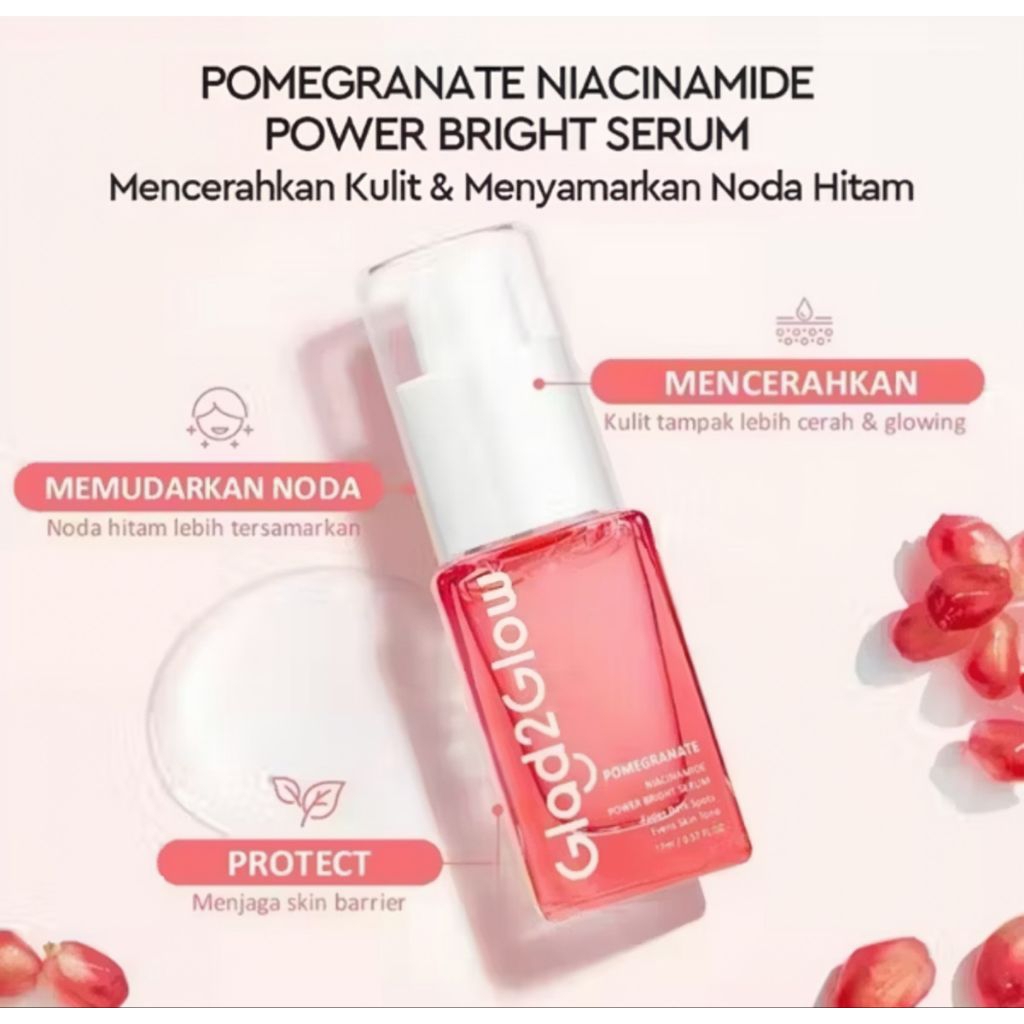 Glad2Glow Pomegrante Niacinamide Power Bright | Serum Brightening Serum Mencerahkan Wajah & Samarkan Noda