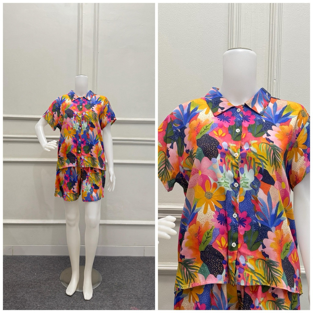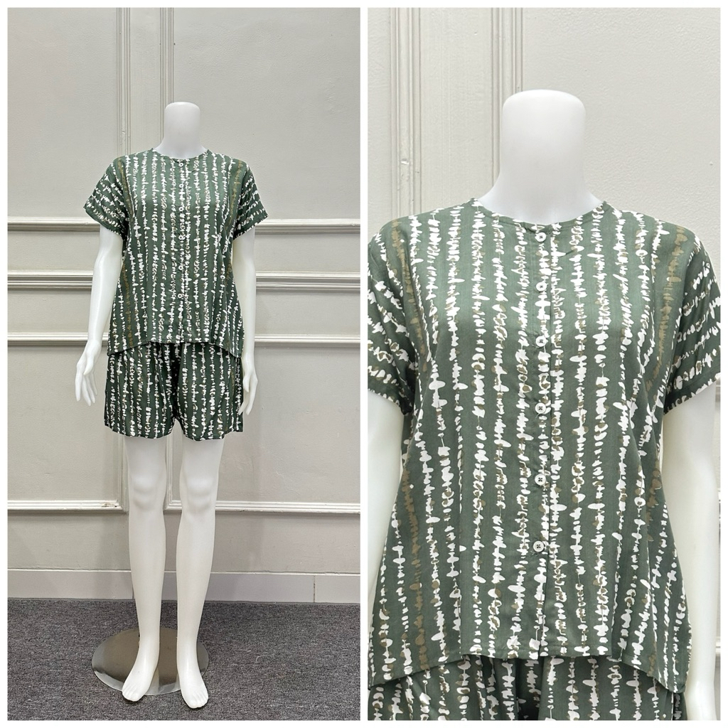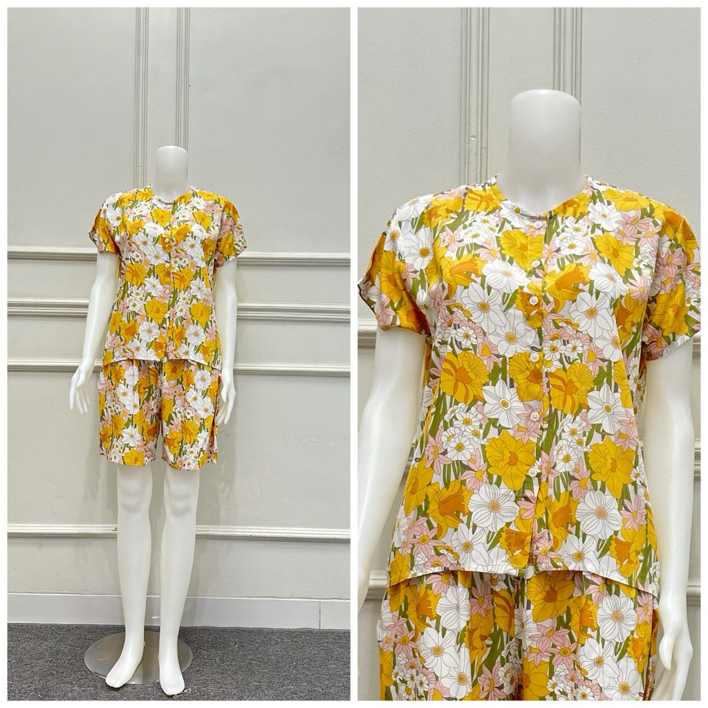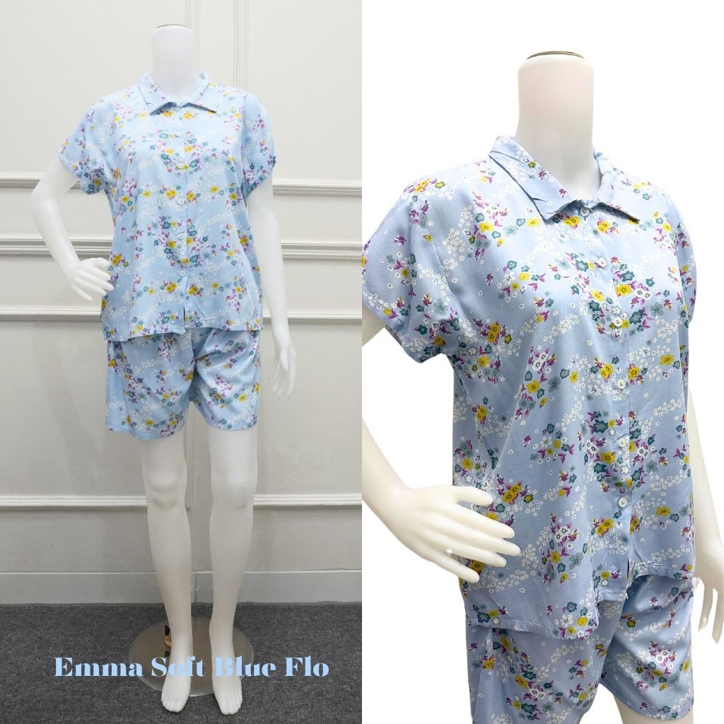 setelan piyama rayon EMMA LD 110 dewasa celana pendek baju tidur harian bahan lembut menyusui friendly