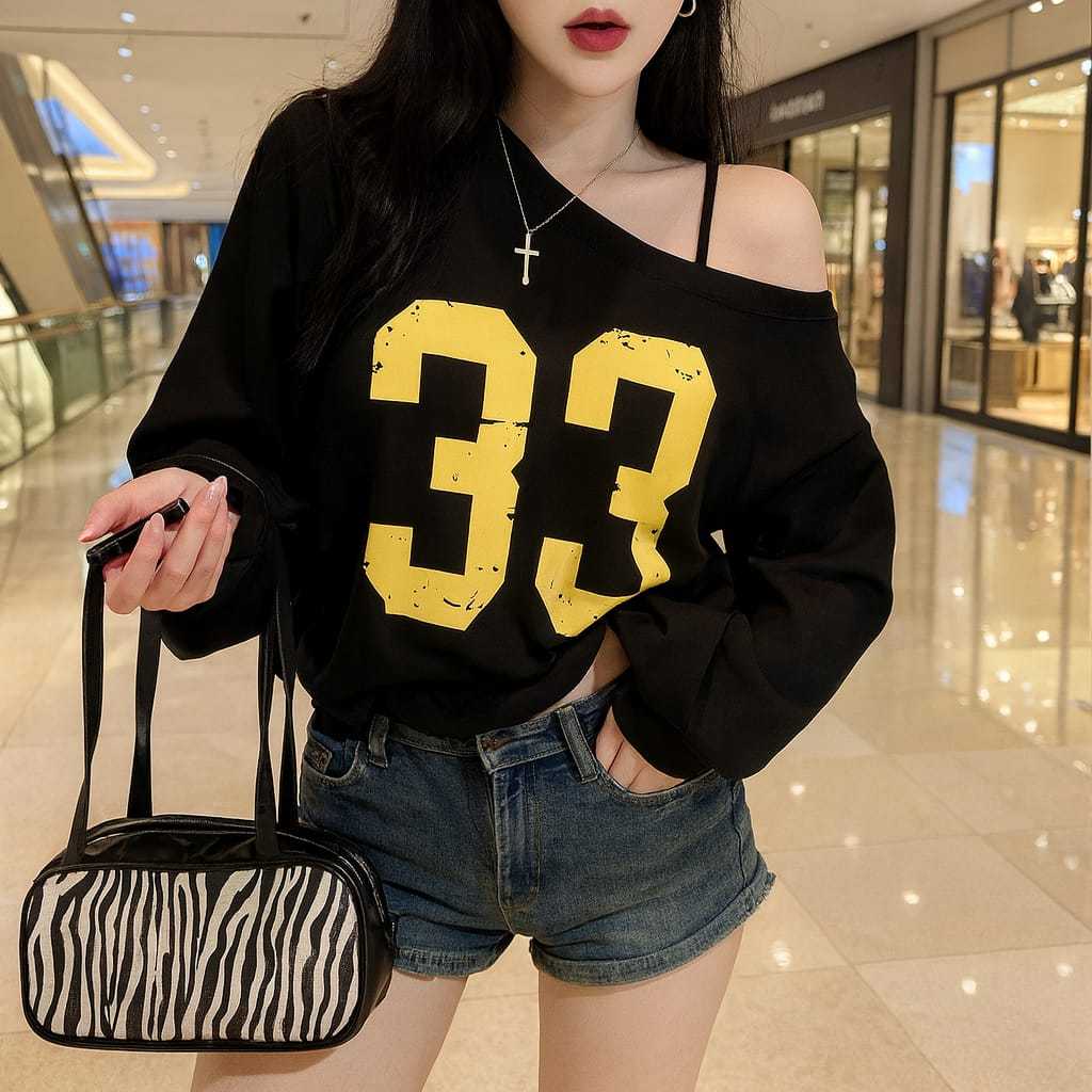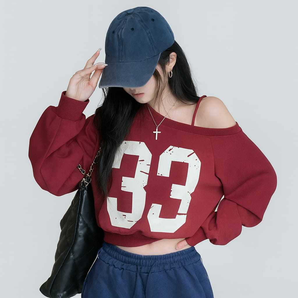 CAIFU Sweater Crop Tali 33 Wanita Remaja Y2K Baju Fleece Oversize Nyaman Santai Top Sablon DTF Size Allsize Lingkar Dada 115cm Panjang 45cm