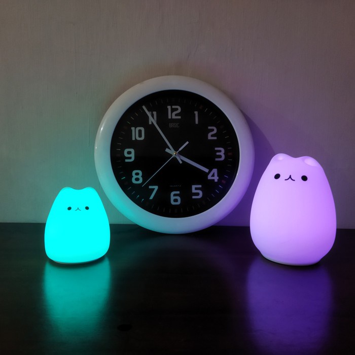 Lampu Tidur LED RGB Cute Cat | Lampu Silikon Model Anak Kucing Gemoy - Kecil (Baterai)