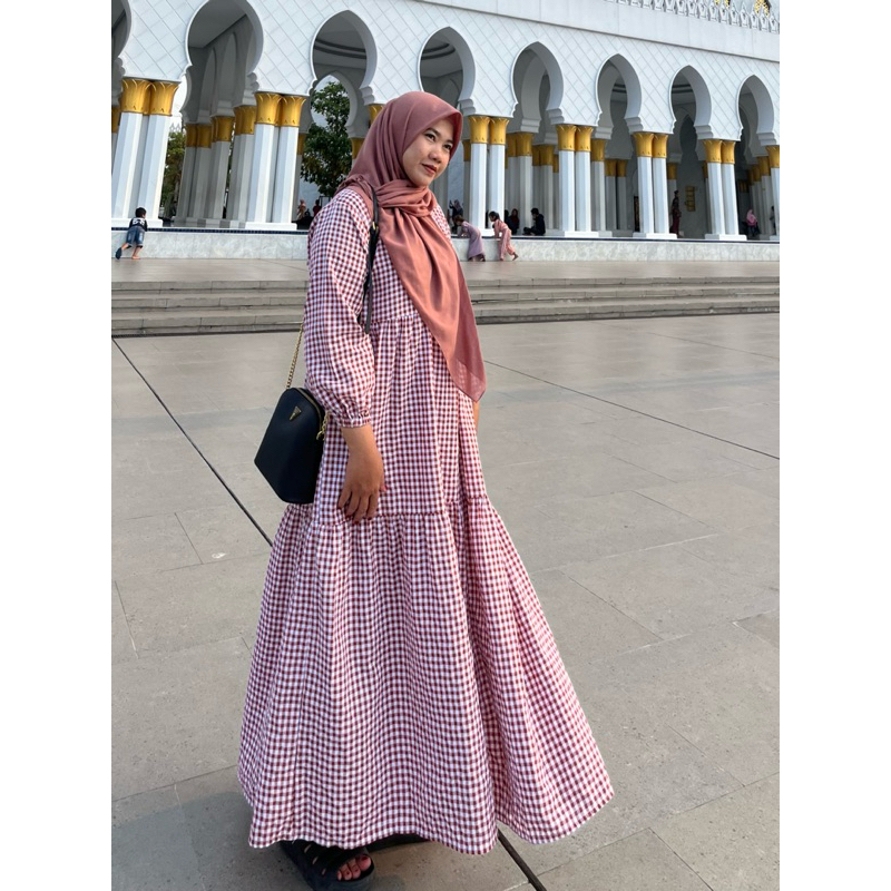 haruka dress / DRESS casual, DRESS motif kotak /dress katun PREMIUN Ld 120