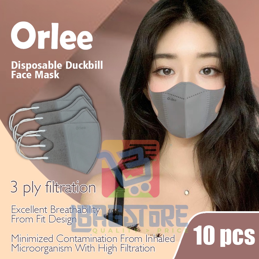 Masker Duckbill 3D Orlee 3 Ply 3Ply Earloop Medis Kemenkes isi 10 pcs Pria Wanita embos original