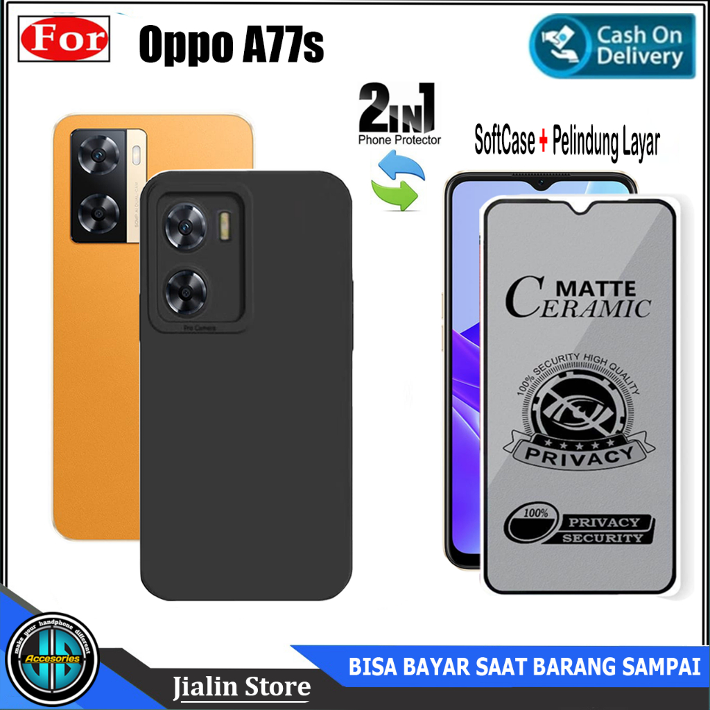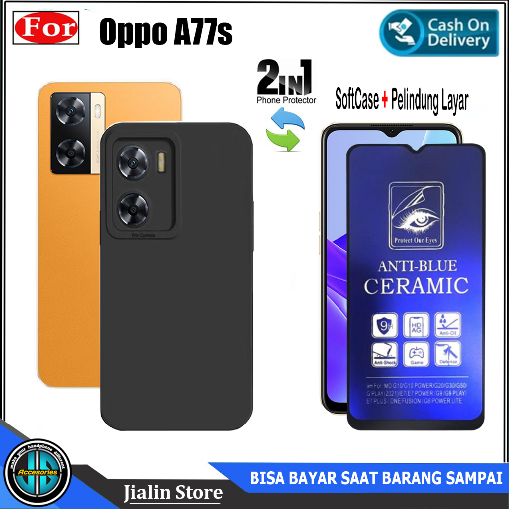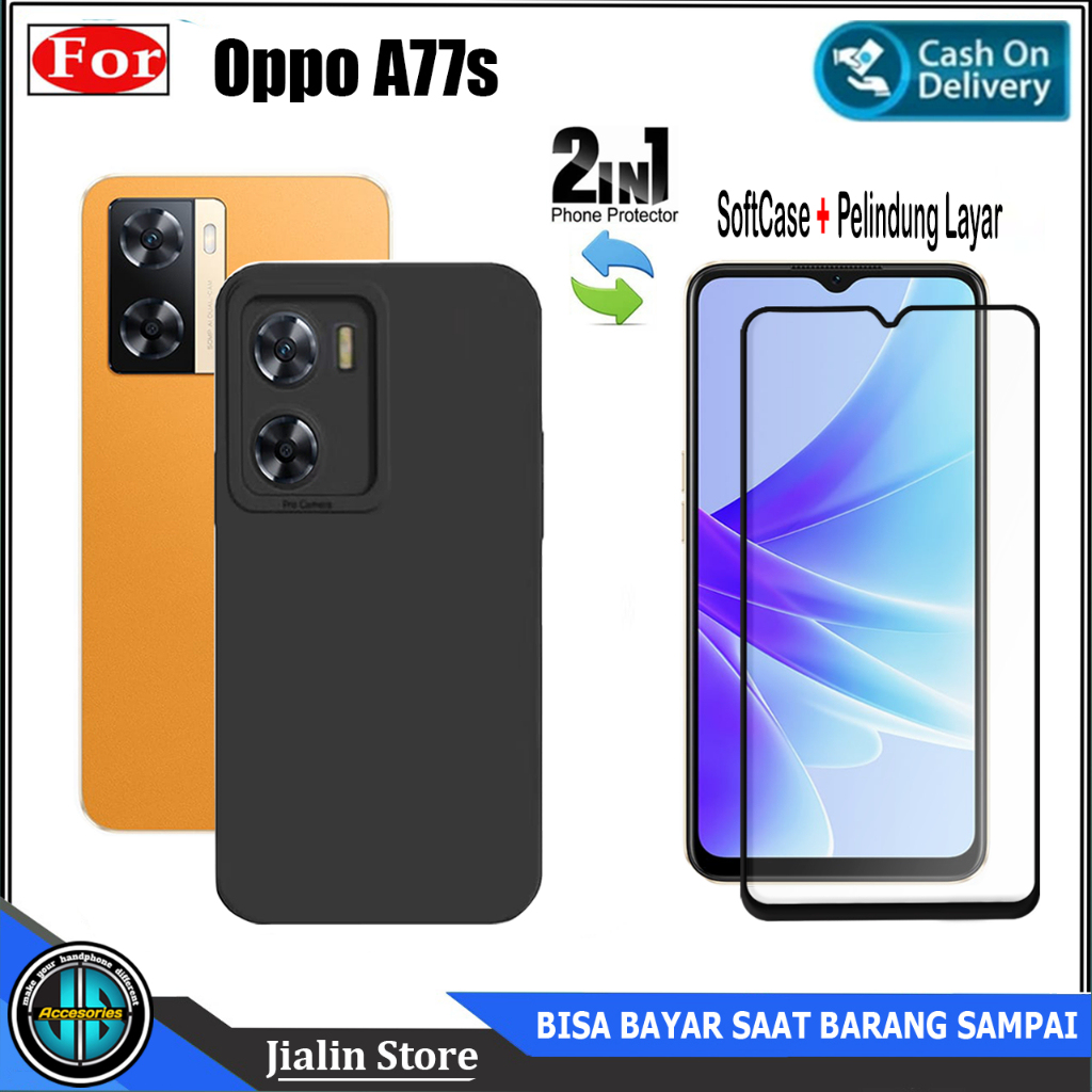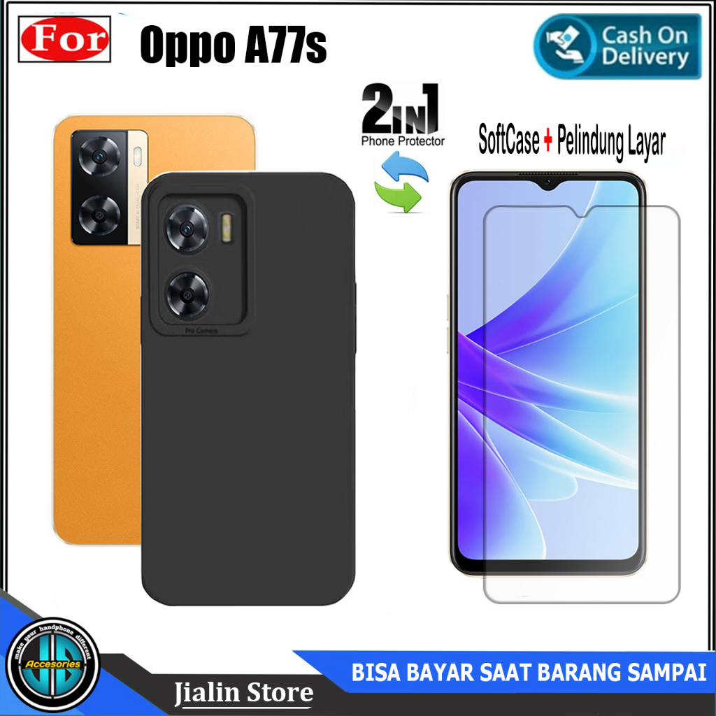 PAKET 2IN1 CASE OPPO A77S CASING ANTIGORES PELINDUNG DEPAN BELAKANG HP SHOFT CASE