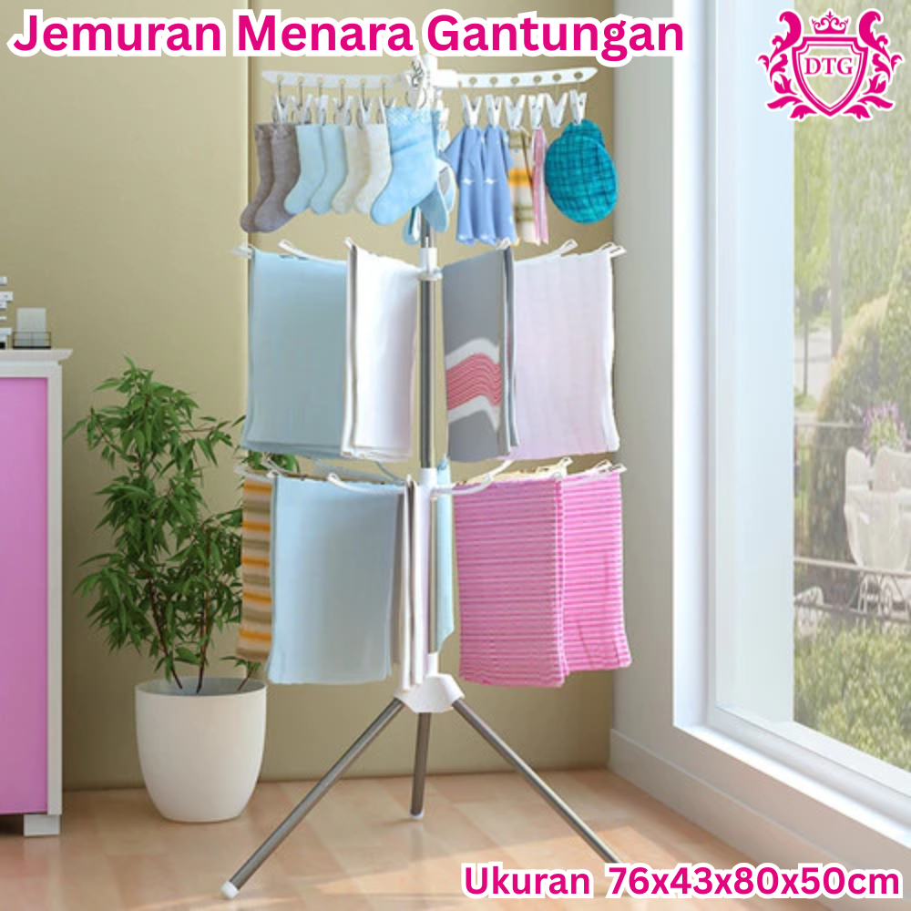 DTG - Jemuran Menara Gantungan Jemuran Bayi Lipat Kokoh Portable 24Jepitan MJJ-2