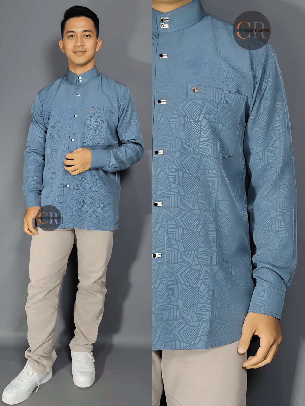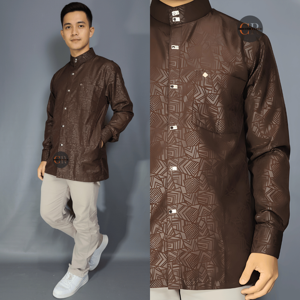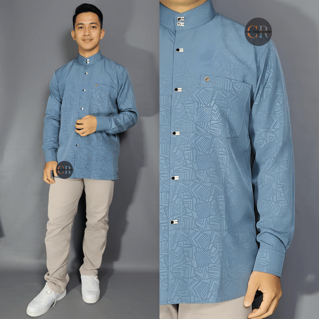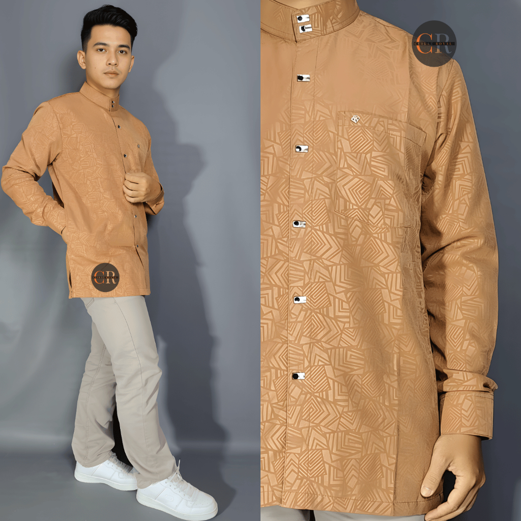 Baju Koko Kurta Embos Dewasa Sultan - Motif Embos Elegan dengan Lengan Panjang