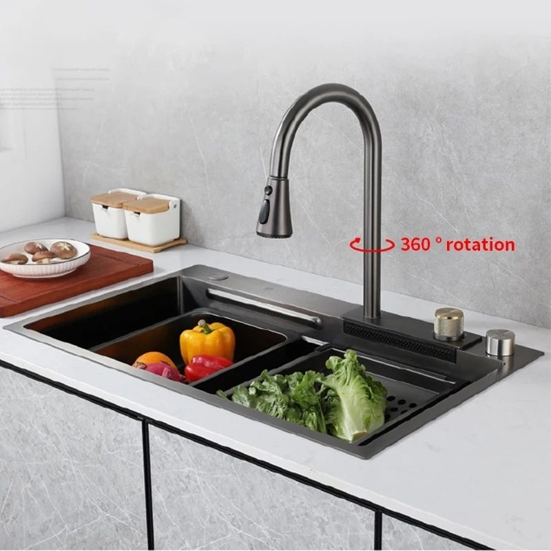 Kitchen Sink Modern Stainless stell BLACK LUXURY New Fitures 7545 Bak Cuci Piring Viral HITAM