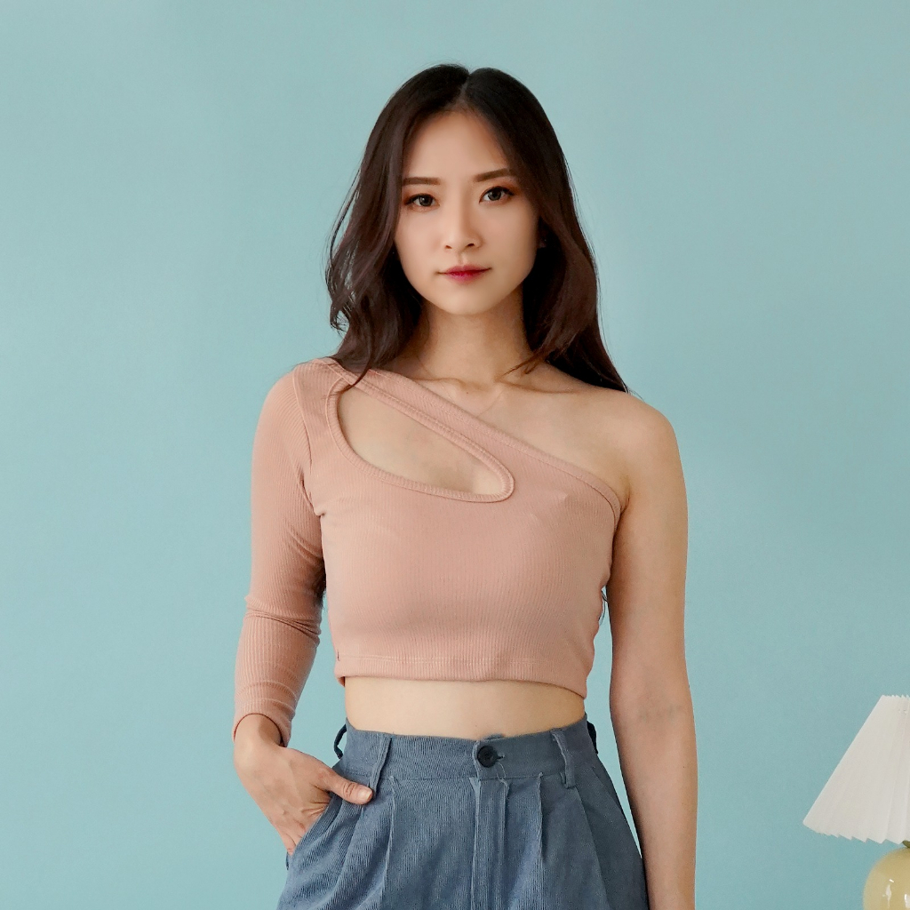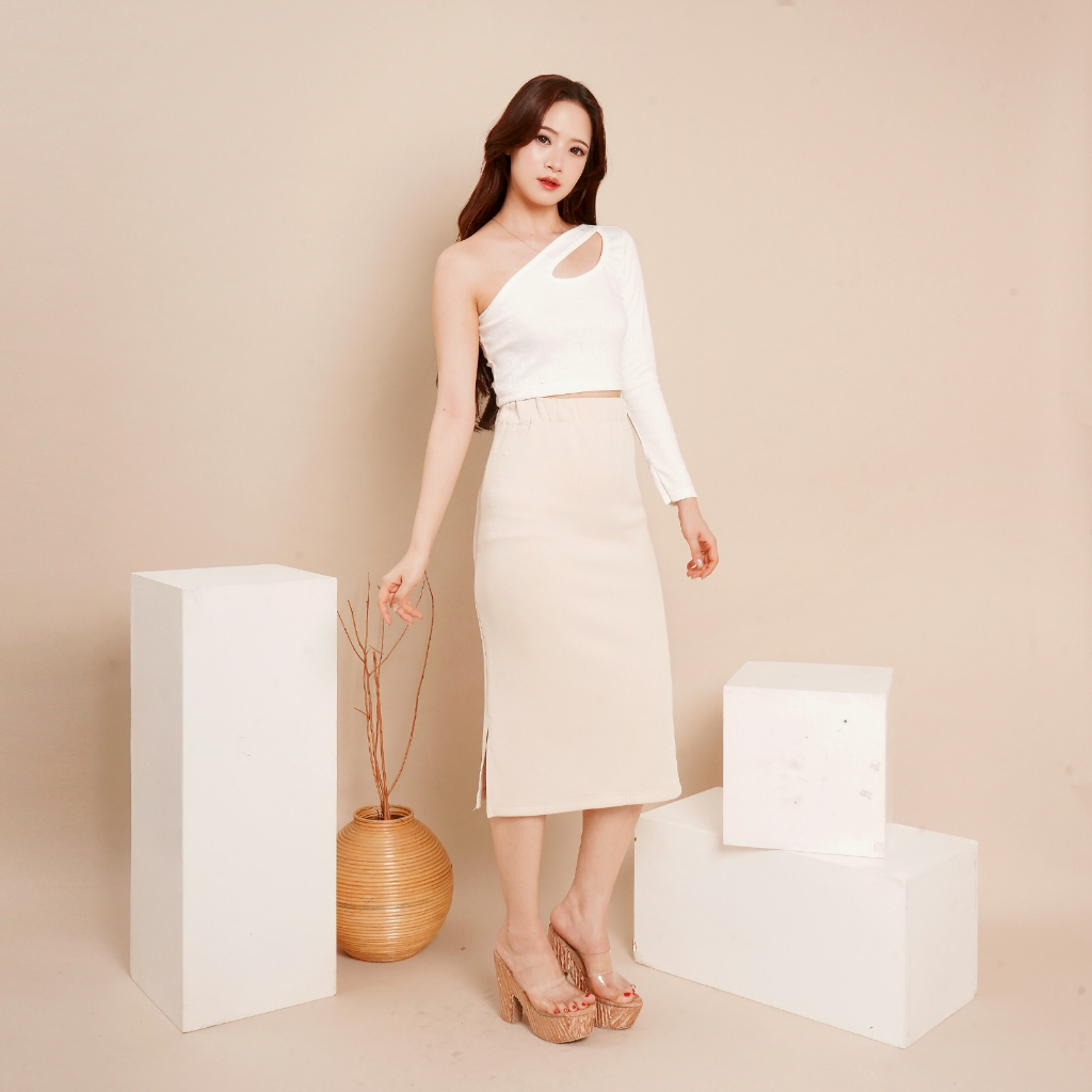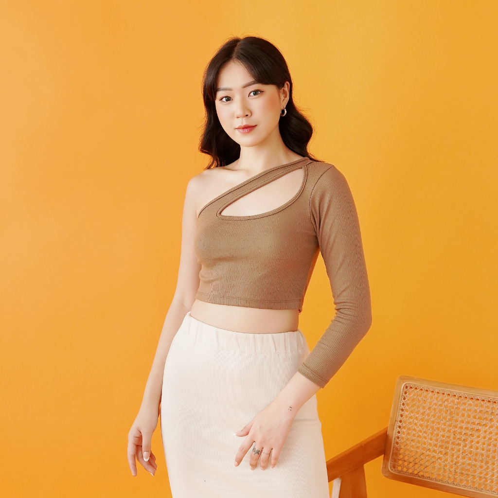 OROY Korean Crop Tank Top One Longsleeve Crop Top Wanita Tarzan Style Knit Rib OR1740