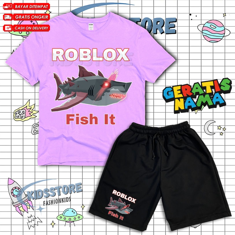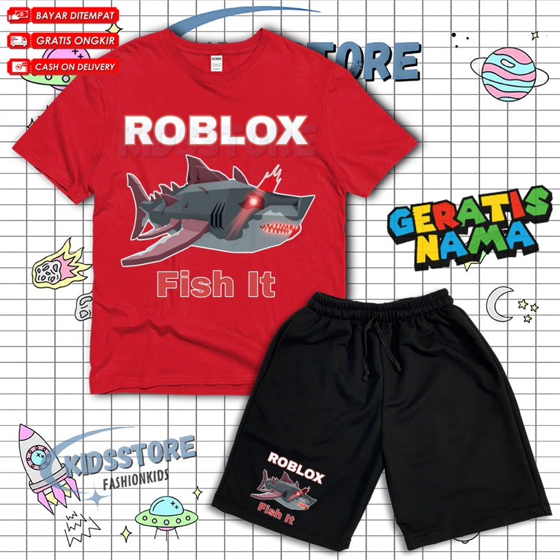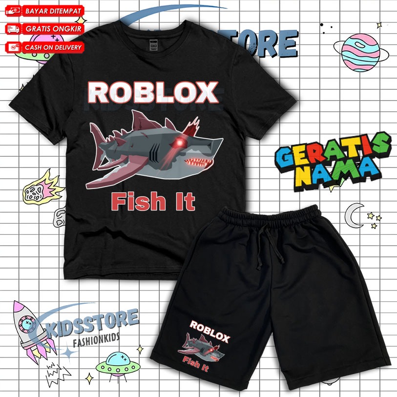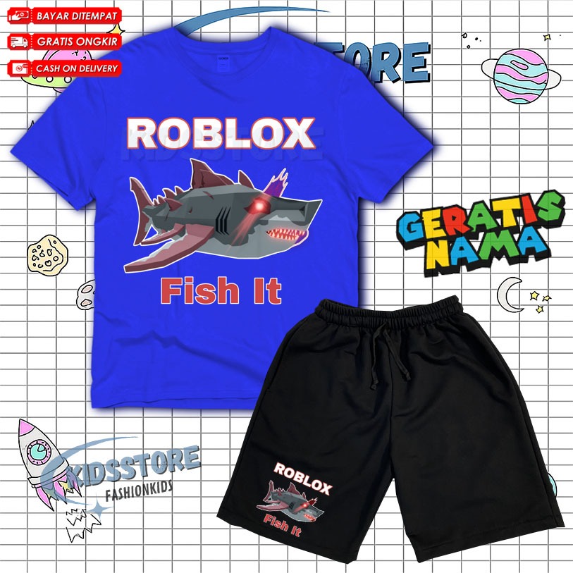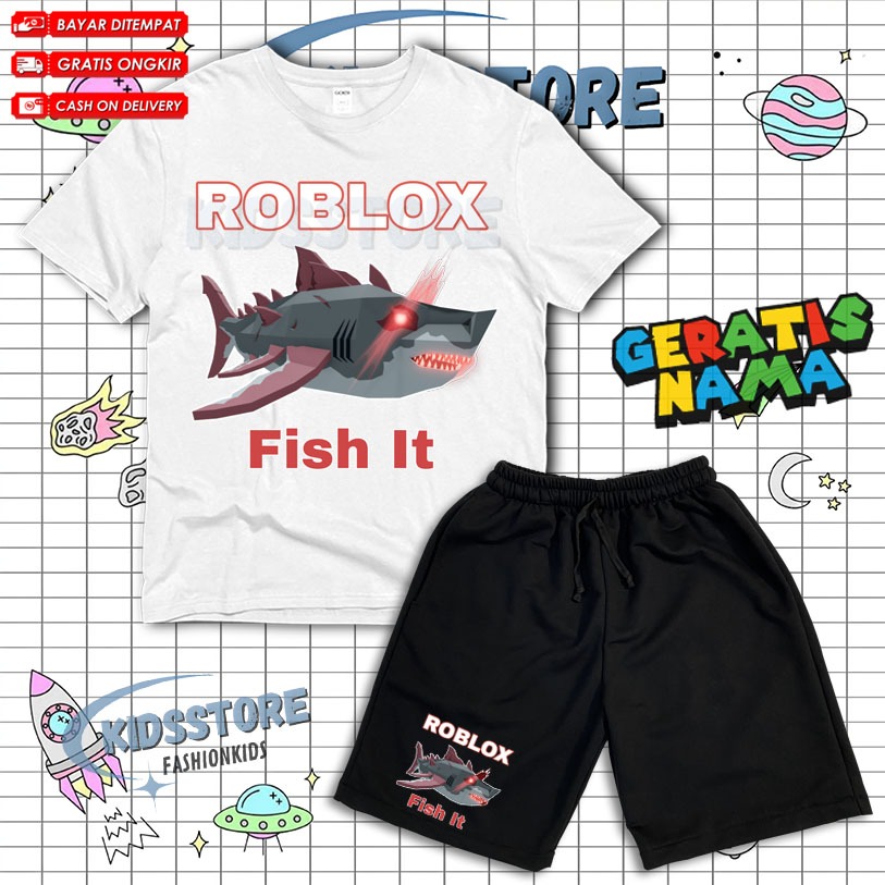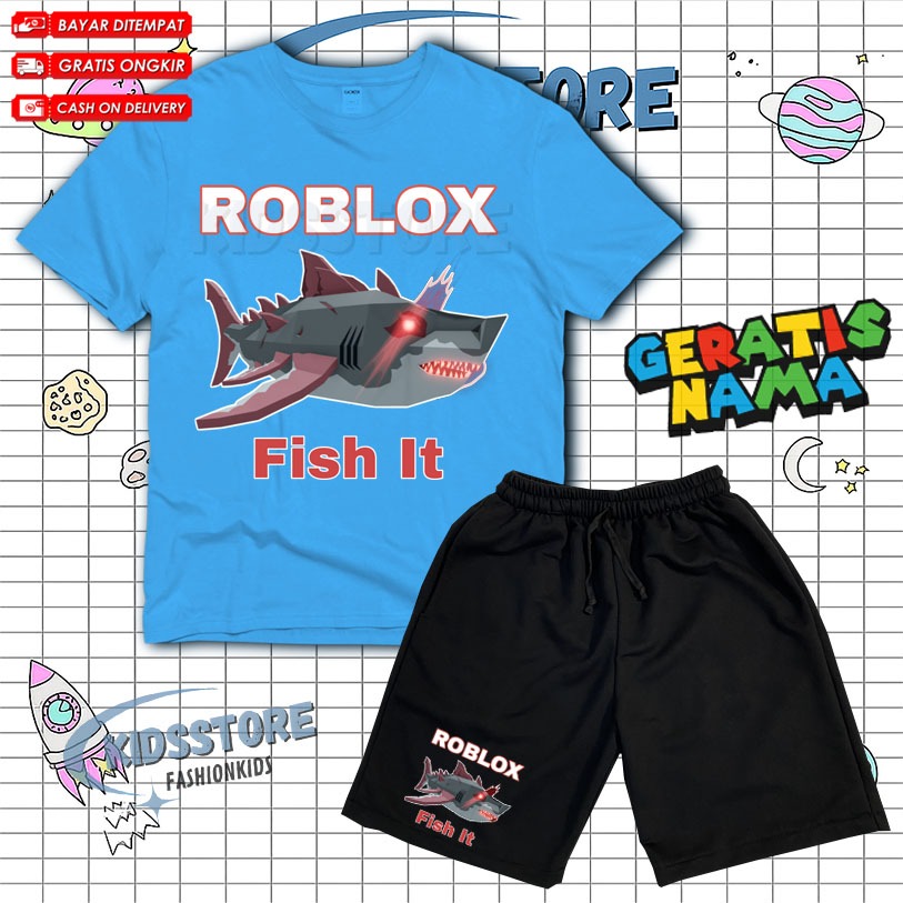 ( BISA COD ) Setelan Anak Fashion Roblox Fish It Scret Fish / Set Kaos Dan Celana Anak Broadshort Roblox Fish Free Nama