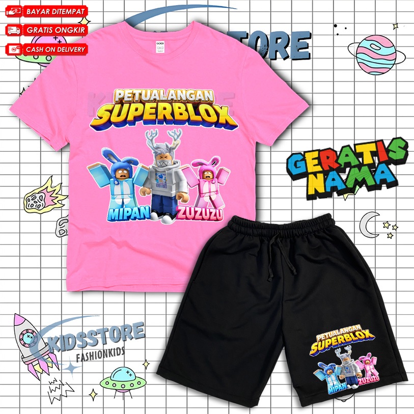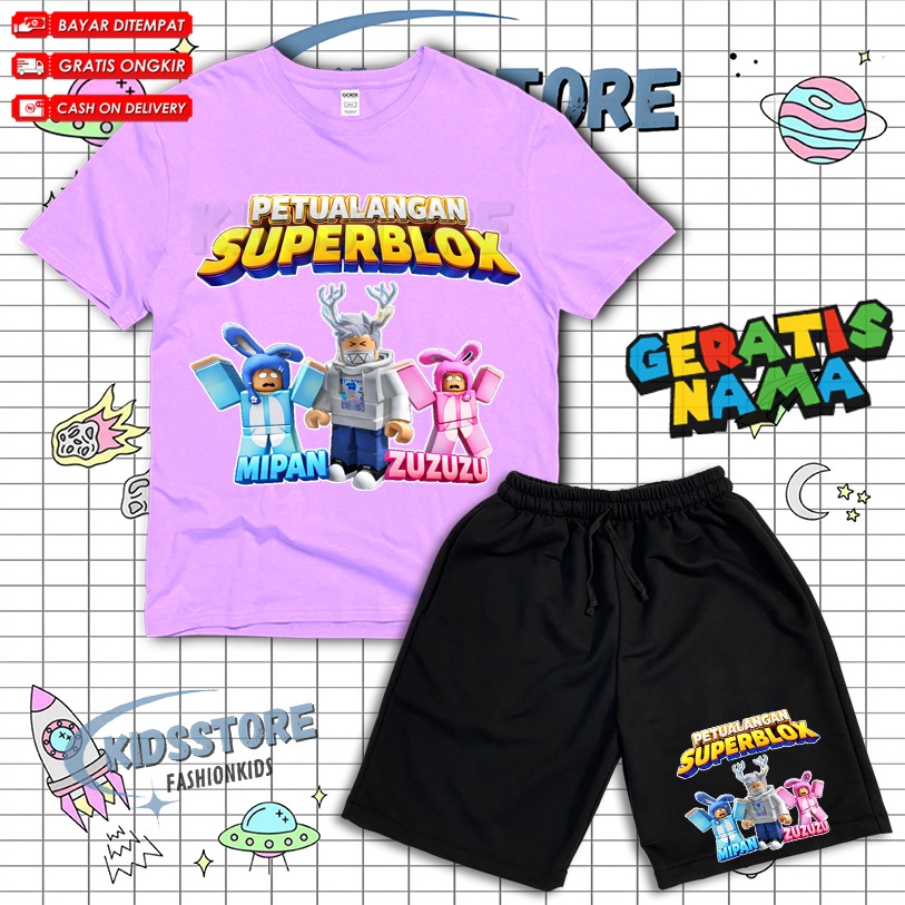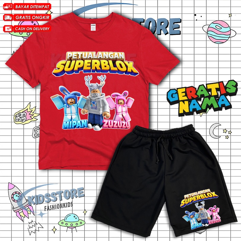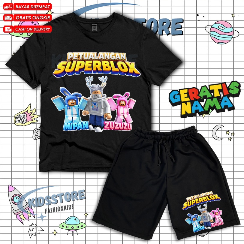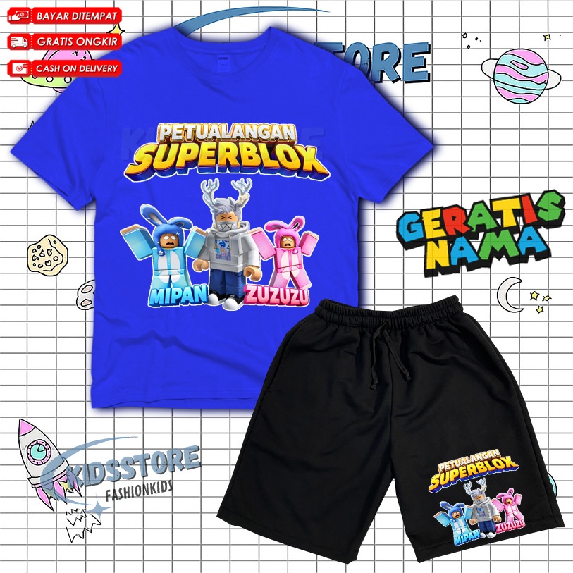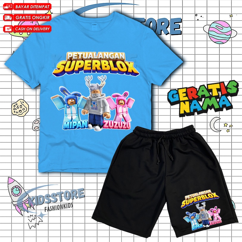 (Free Nama) Setelan Kaos Celana Pendek Anak Gambar Roblox Petualangan Superblox Akudav Mipan dan zuzuzu / Set Baju Akudav Mipan zuzuzu Petualangan Superblox / Tshirt Kids Pakaian Distro Fashion Anak untuk Laki Laki dan Perempuan Usia 3-12 Tahun Bisa COD