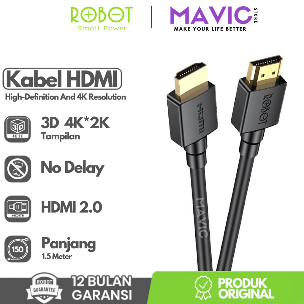 ROBOT Kabel HDMI 2.0 Cable High Definition No Delay 3D 4K*2K HDTV LCD Projector 1M 1.5M 2M 3M 5M / RFH01 RFH02 RFH03 RFH015 RFH05 - Garansi Resmi 1 Tahun