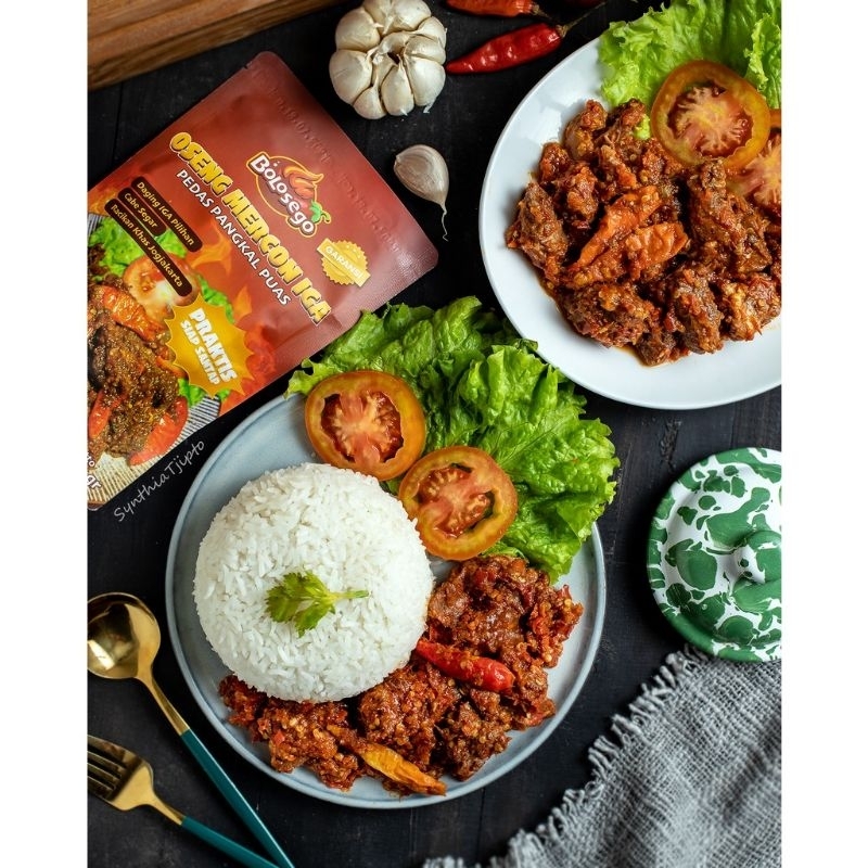 OSENG MERCON IGA SAPI 200gram Bolosego Level Pedas Lengkap Siap Saji Khas Jogja