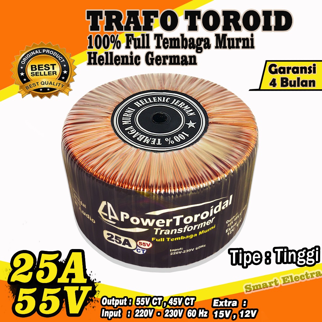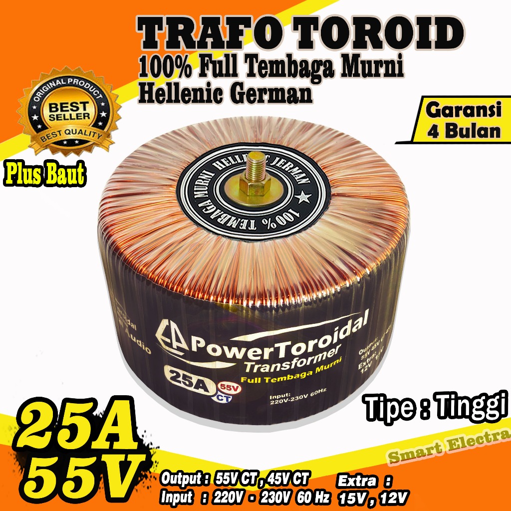 Trafo Toroid 25A Ct 55V 45V Tipe TINGGI (MURNI) Dengan Full Tembaga Murni Helecnic Jerman