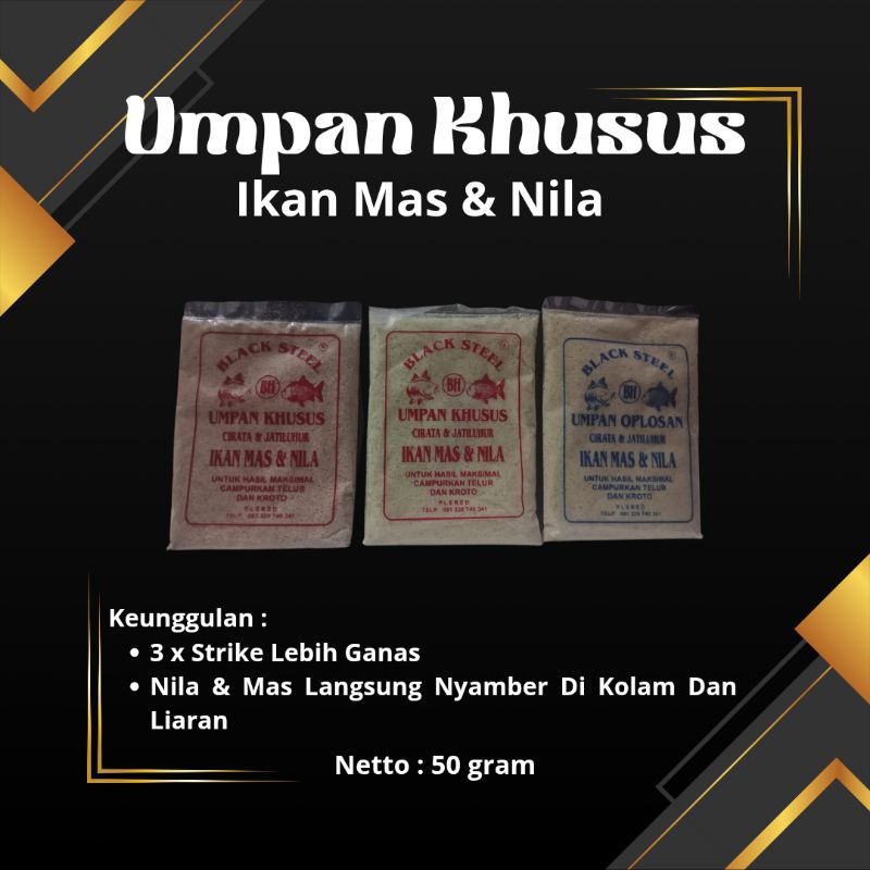 Umpan Ikan Nila & Mas BLACK STEEL - Racikan Umpan Bubuk / Serbuk 100gr Siap Mancing Di Kolam Dan Liaran