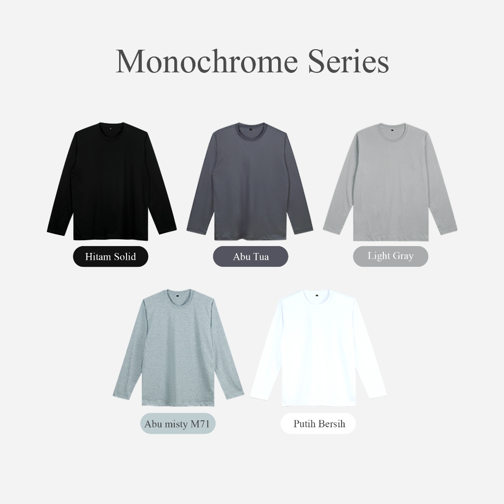 KAOS POLOS COTTON COMBED 30S LENGAN PANJANG ONECK REGULER FIT BASIC T-SHIRT UNISEX MONOCHROME SERIES