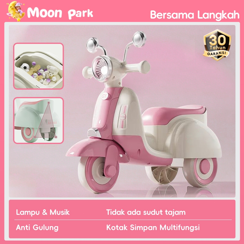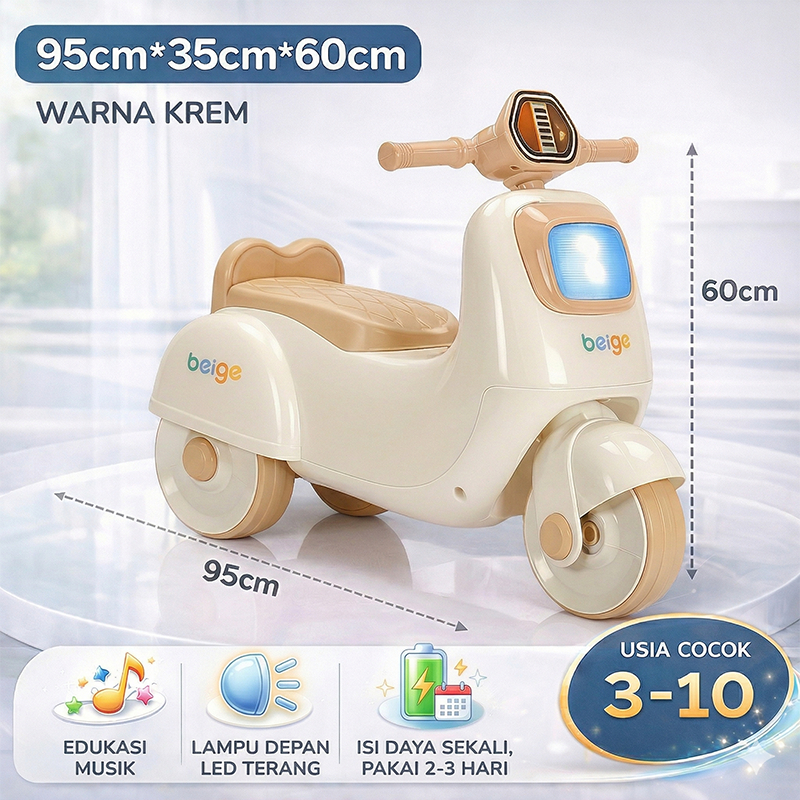 BEIGE Motor Anak Bisa Dinaiki Lampu & Musik Mainan Anak Vespa Dorong Hadiah Anak Murah 1-5 Tahun