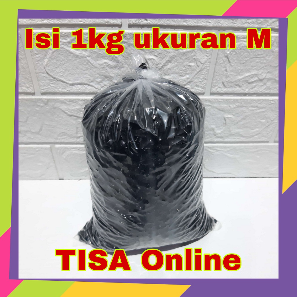 913D1 / Grosir isi 1kg karet Jepang ukuran M warna hitam polos / Karet Ikat rambut wanita