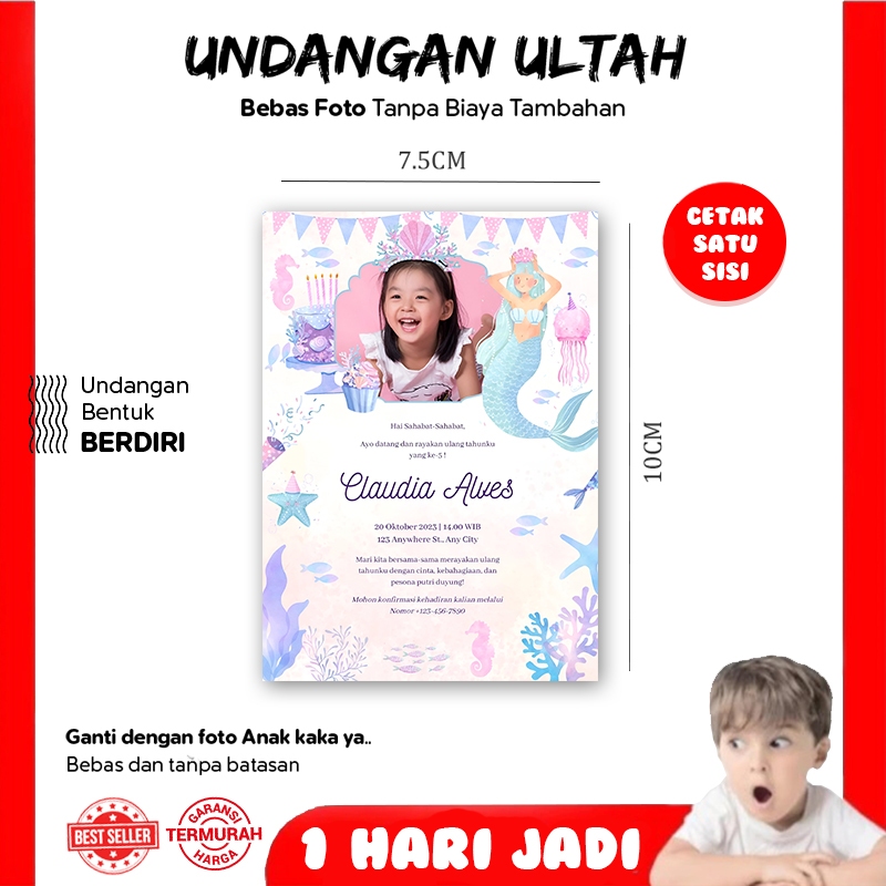 (Bebas Foto) Undangan Ulang Tahun Anak Laki Laki Perempuan, Undangan Ultah Custom Bebas Foto Sendiri