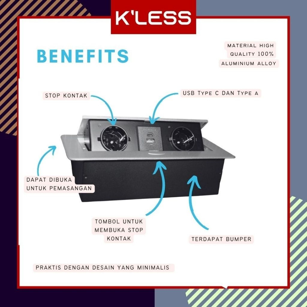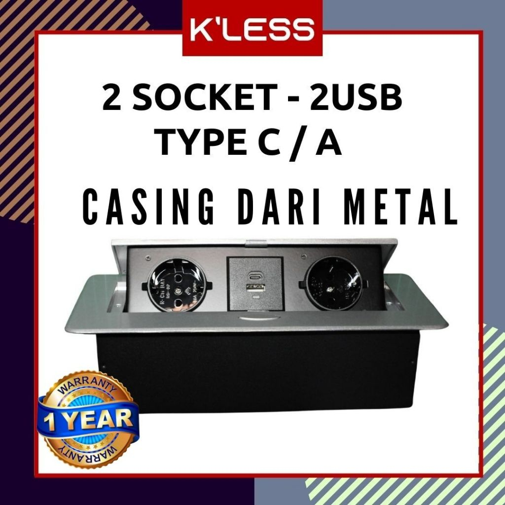 Stop Kontak Meja Meeting Tanam 2 USB Type C / A - 2 Socket Soft Pop Up