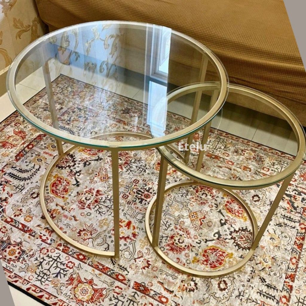 Meja Kaca Meja Tamu 1 set 2 pcs Meja Tamu Minimalis Meja Keluarga Nesting Coffee Table