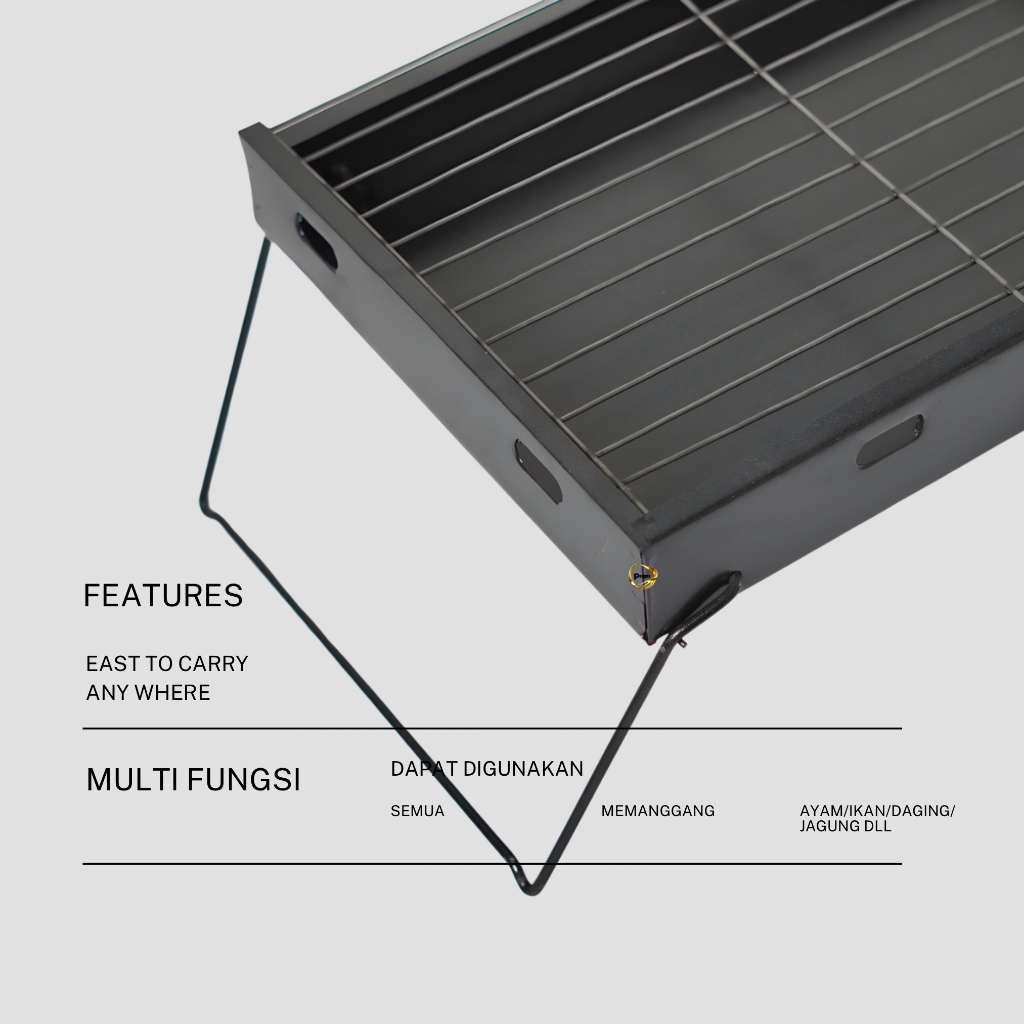 Pondox Panggangan Portabel BBQ Grey Pemanggang Daging Steak Sate Alat Pemanggang Arang