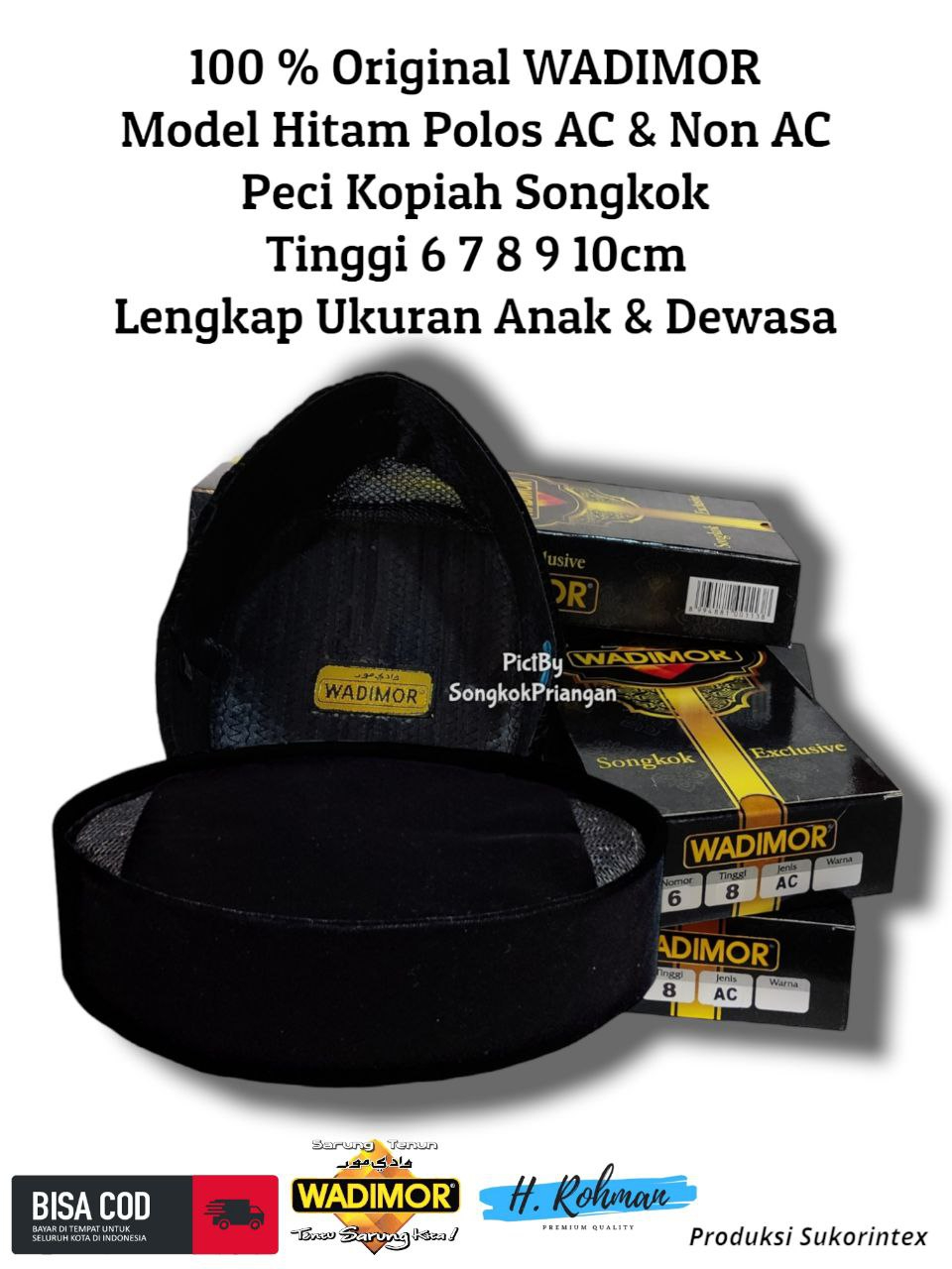 peci dewasa terbaru 2026 WADIMOR kopeah kopiah hitam polos AC songkok nasional beludru halus tinggi standar