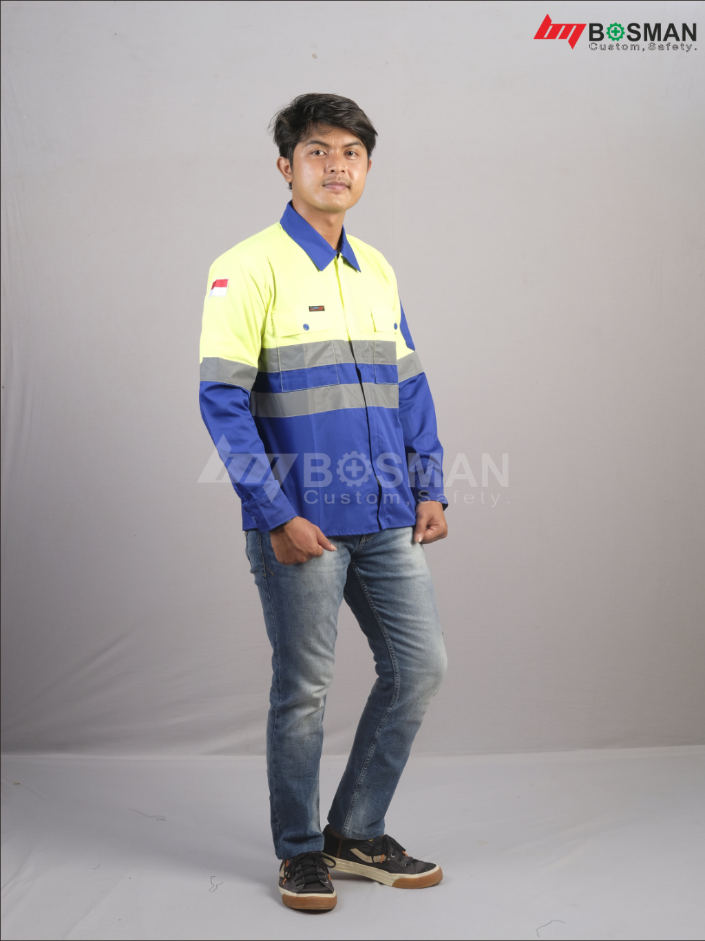 Bosman Wearpack Atasan Pria dan Wanita Kemeja Safety Atasan Resleting Bordir Logo K3 dan Bendera
