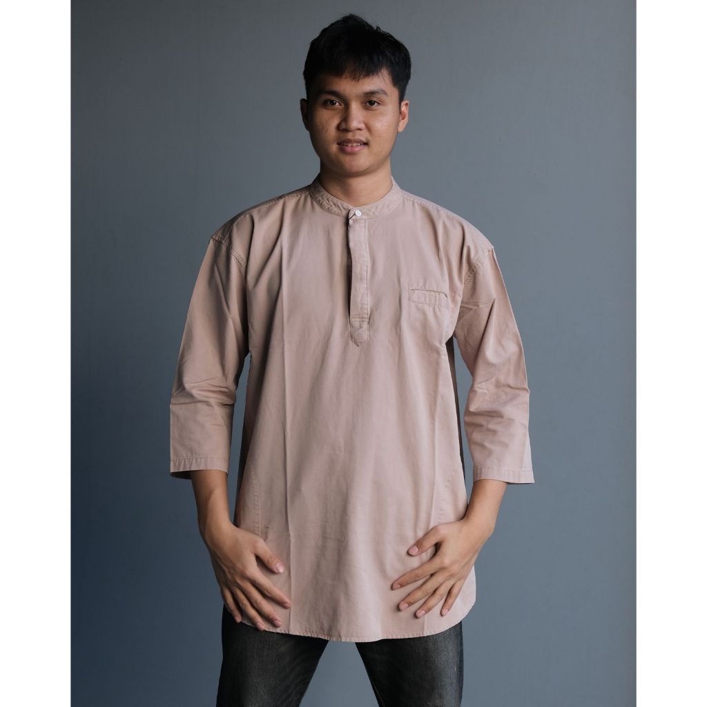 OSG - Baju Kurta Twill Washing Pria Premium | Kemeja Koko 3/4 Dewasa (Light Taupe)