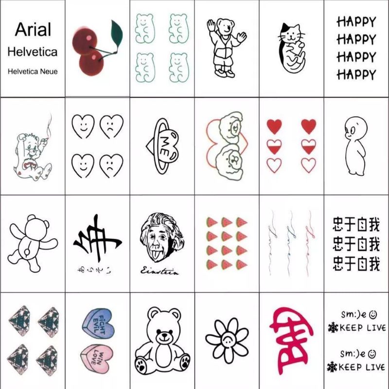 48pcs Buah/Lot Stiker Tato Sementara Tato Cantik Ceri Bunga Cinta Beruang Lucu untuk Wanita Tato Palsu Transfer Air