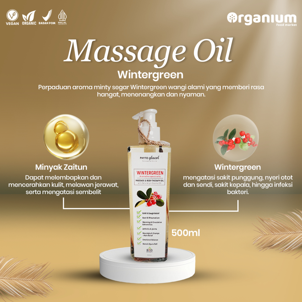 Massage Therapy Oil Wintergreen PHYTO ORGANIC Minyak Pijat Natural - 500ml