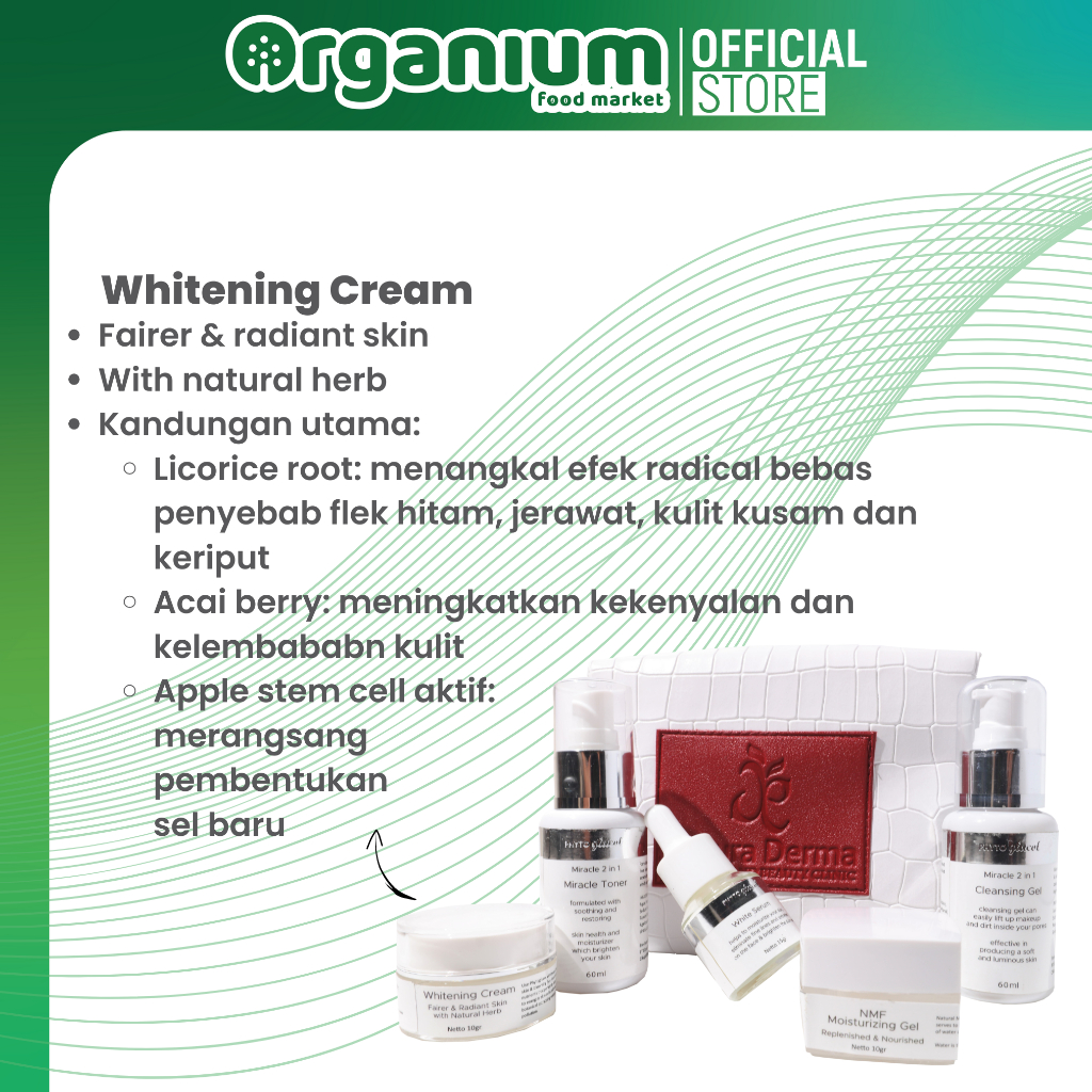 NDerma Brightening Travel Pouch , Paket Serum Pemutih Wajah, Toner, Cleansing & Cream