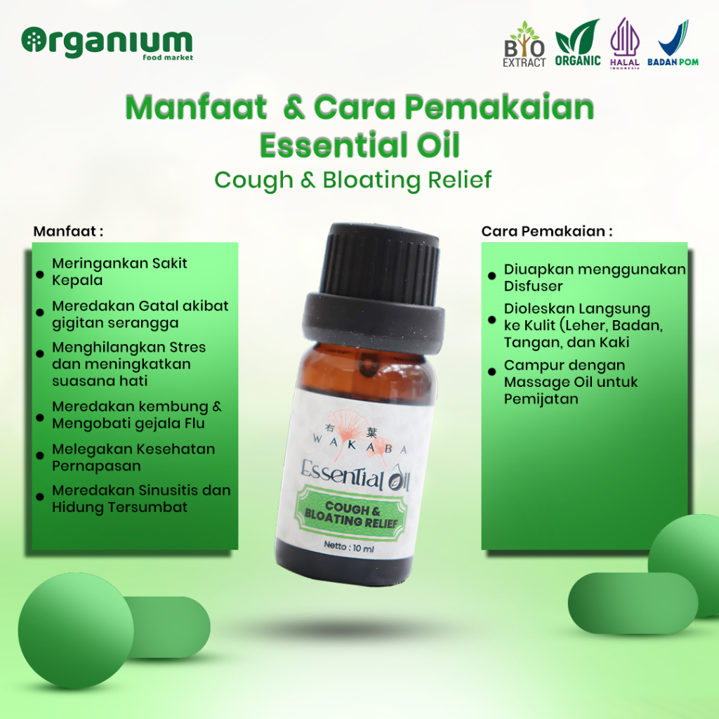 Essential Oil Health Support Aromatherapy WAKABA Minyak Esensial Cought & Bloathing Relief - 10ML