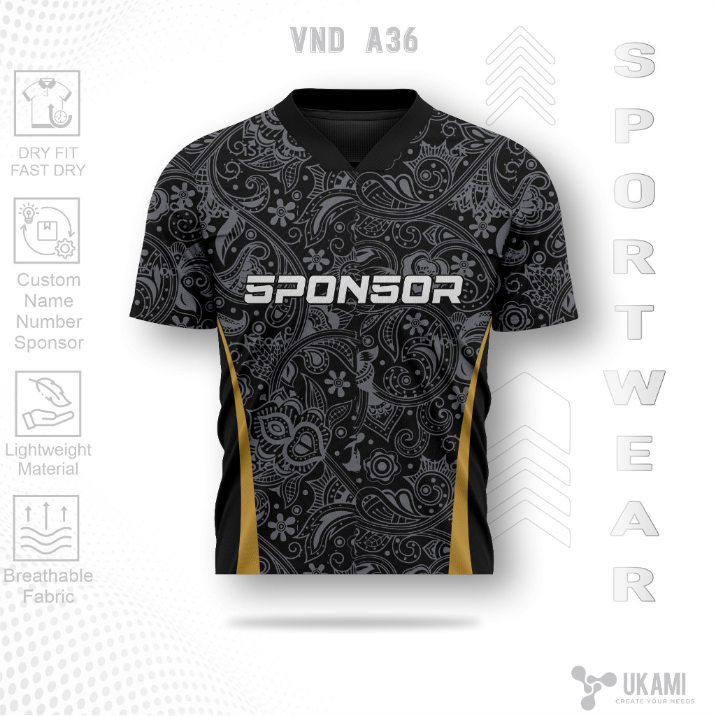 ENIMBUS Batik Black Marquise Jersey - Kaos Olahraga Sepeda Volly Ball Futsal Bulutangkis Sepak Bola Casual VND-A36