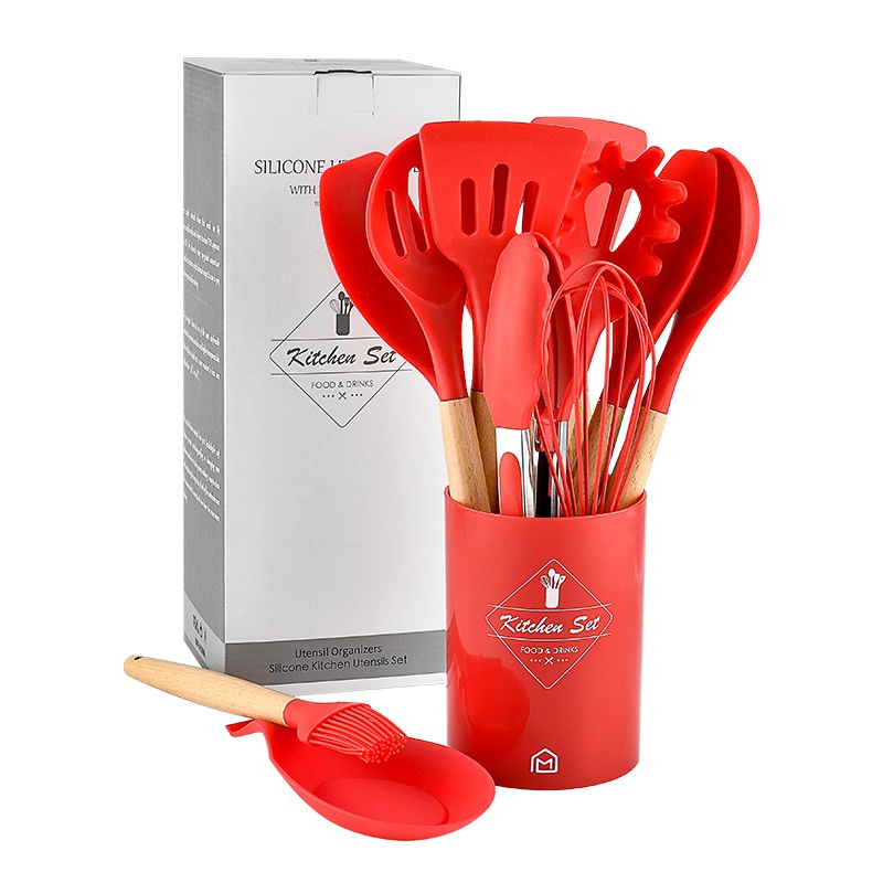 Silicone utensi set isi 17 / set isi 13 Peralatan spatula silicone sutil Sodet Silicone Beech Sendok Takar Measuring Spoon Measuring Cups Slotted Scrapper Soup KITCHEN SET