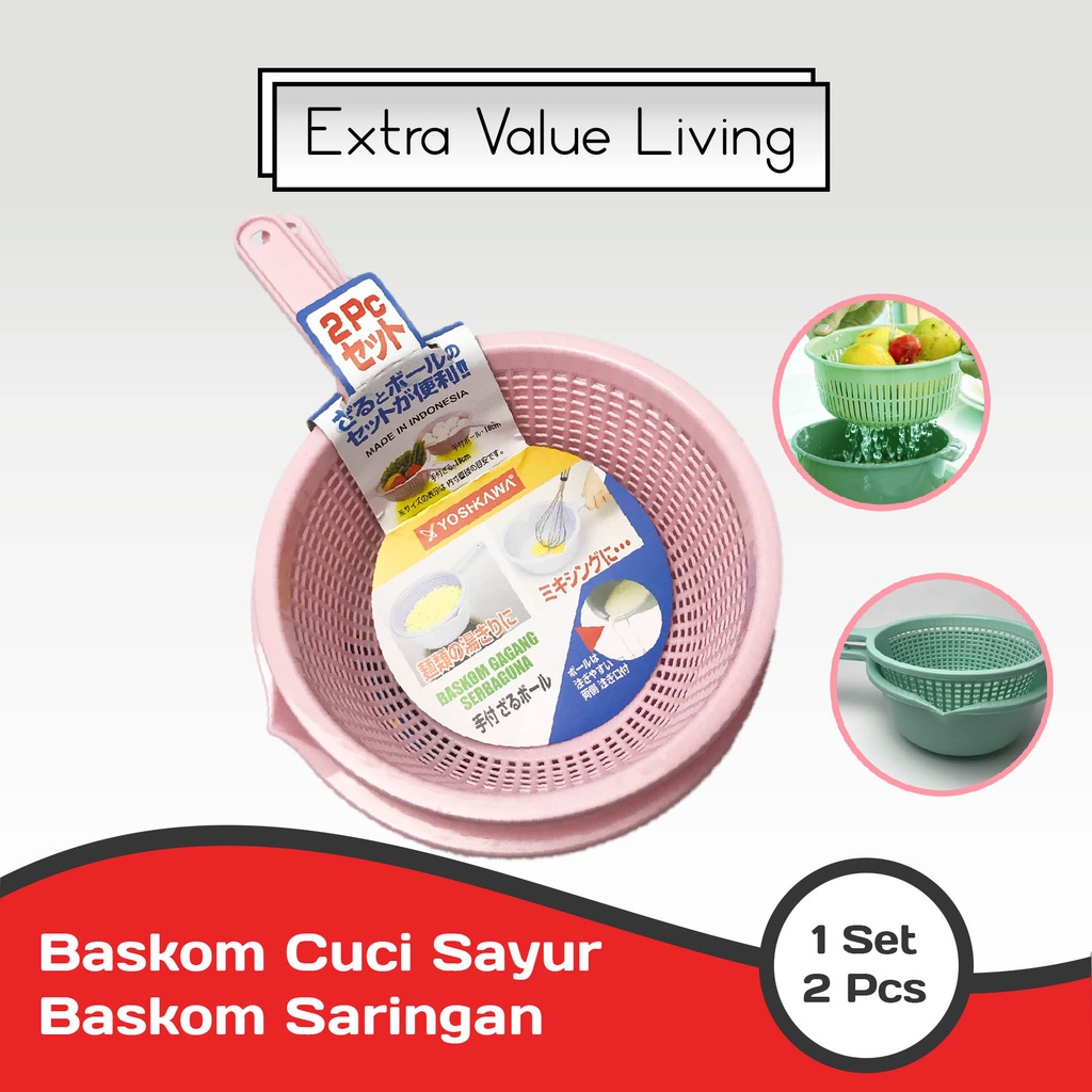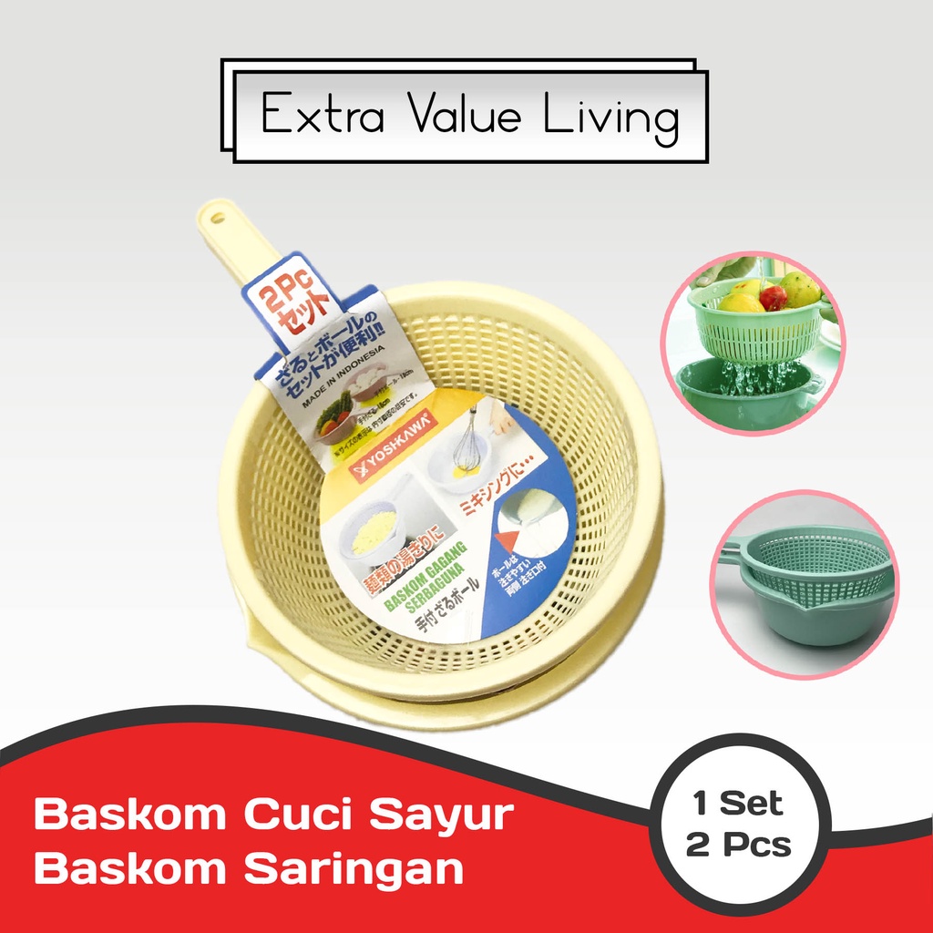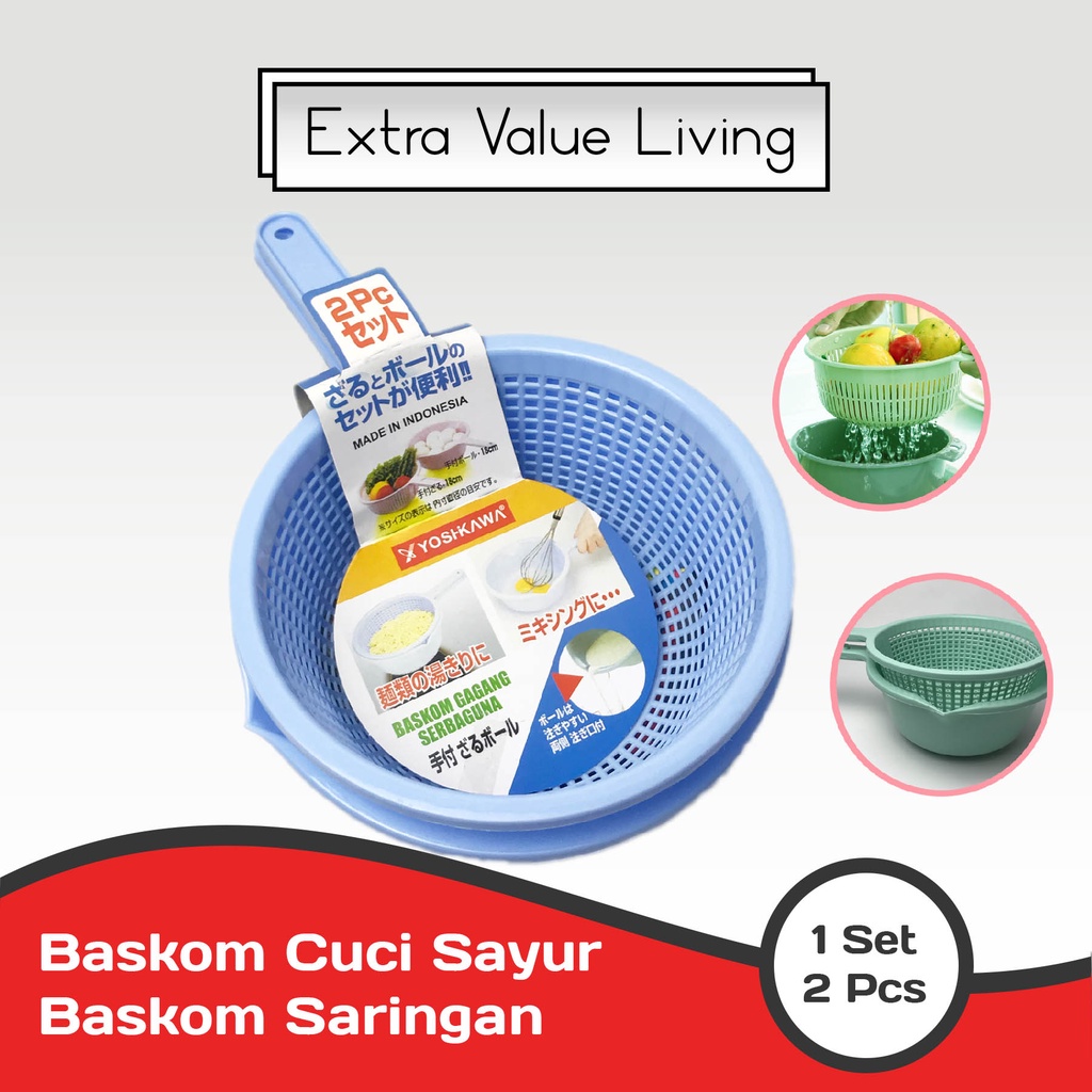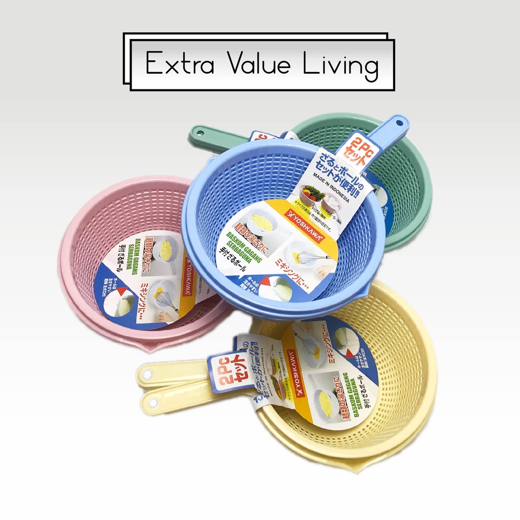 YOSHIKAWA Baskom Plastik Set / Baskom Saringan Sayur Serbaguna Ukuran 20 CM EVL-B-081