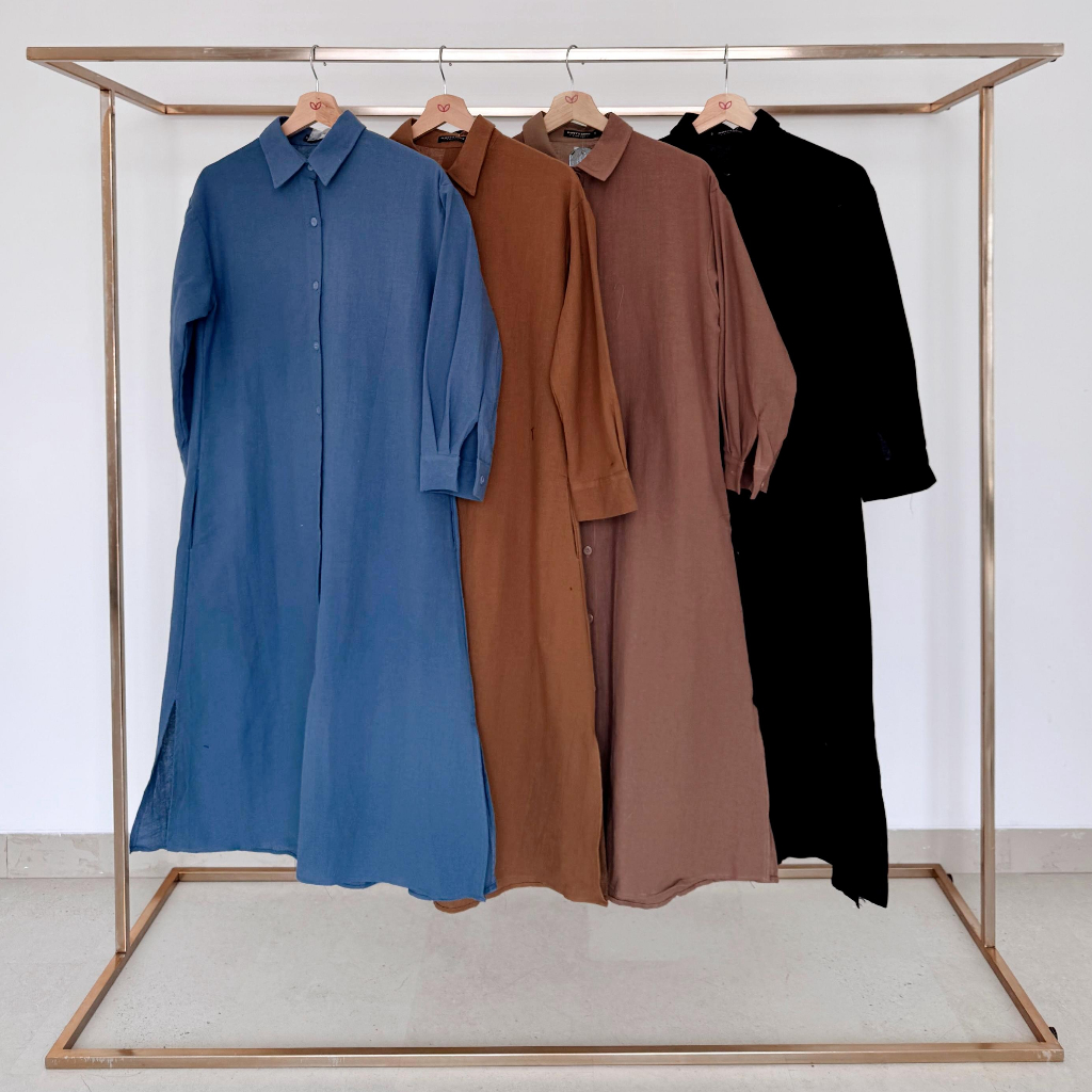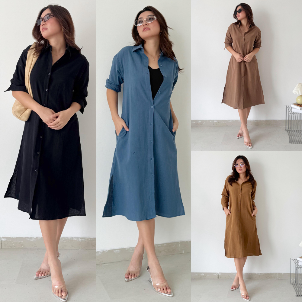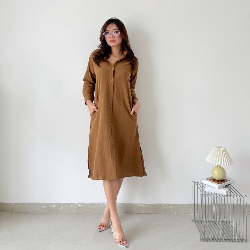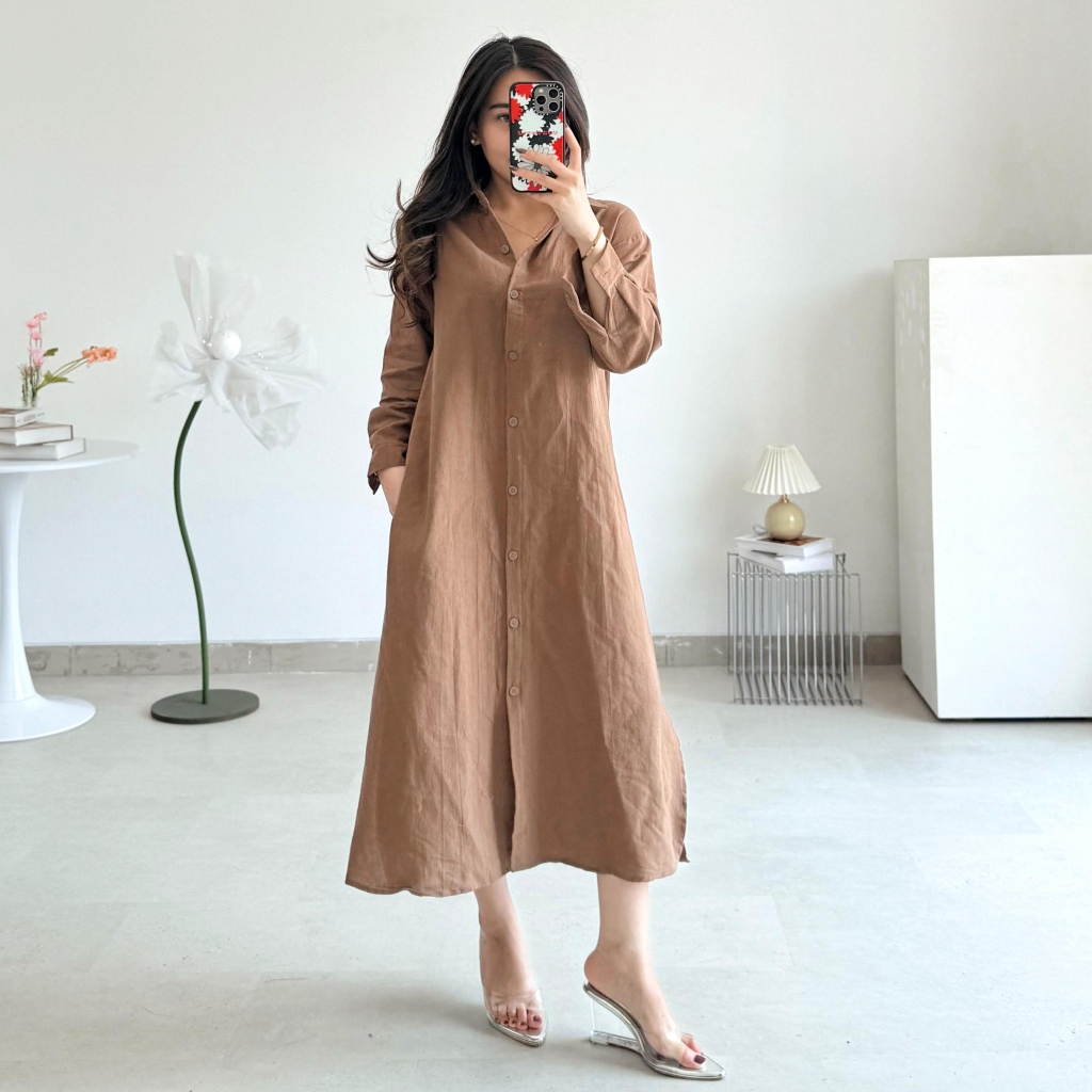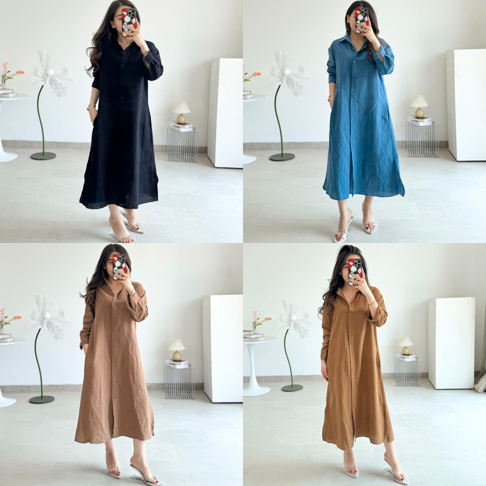 Pluffyschoice Julia Linen Shirtdress Baju Dress Wanita