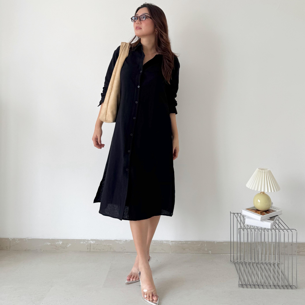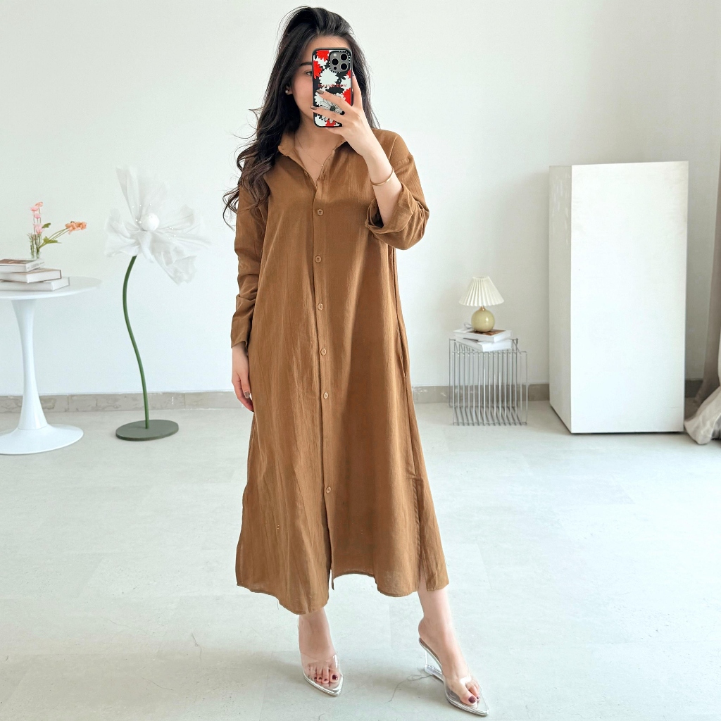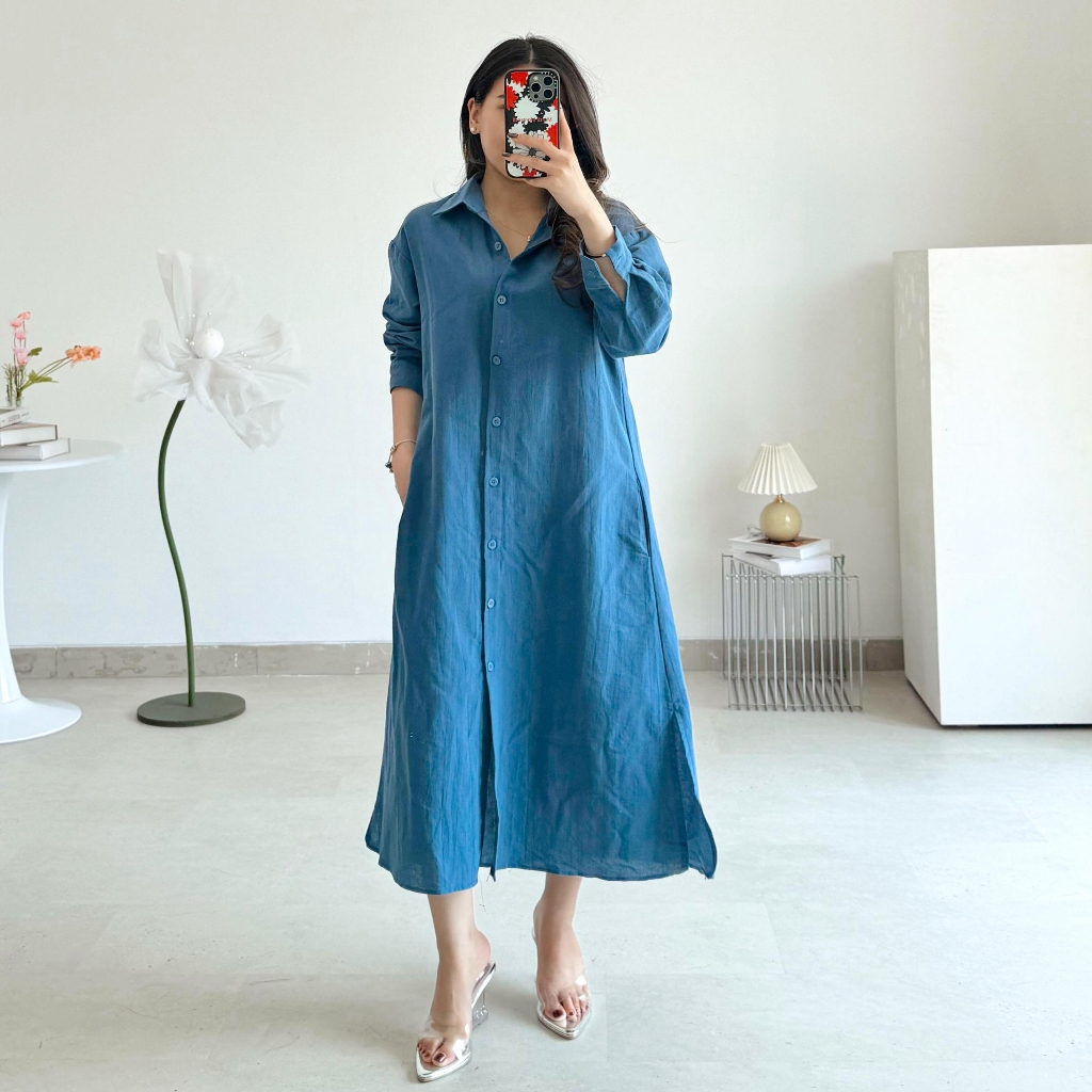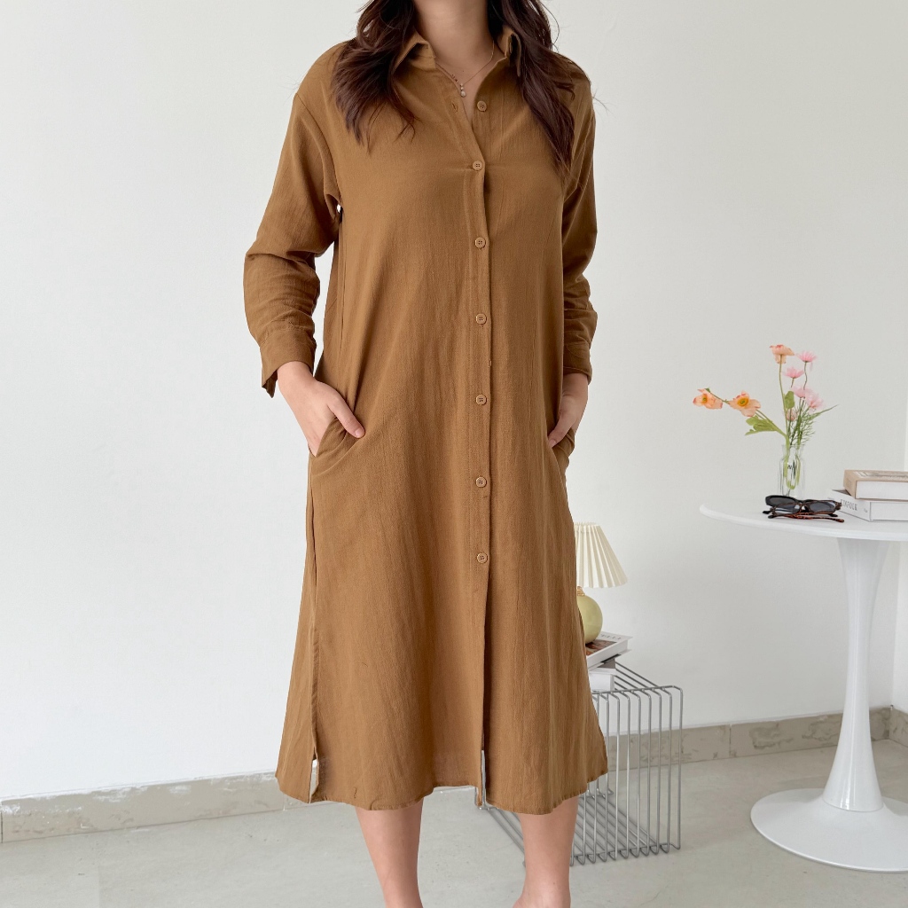 Pluffyschoice Julia Linen Shirtdress Baju Dress Wanita