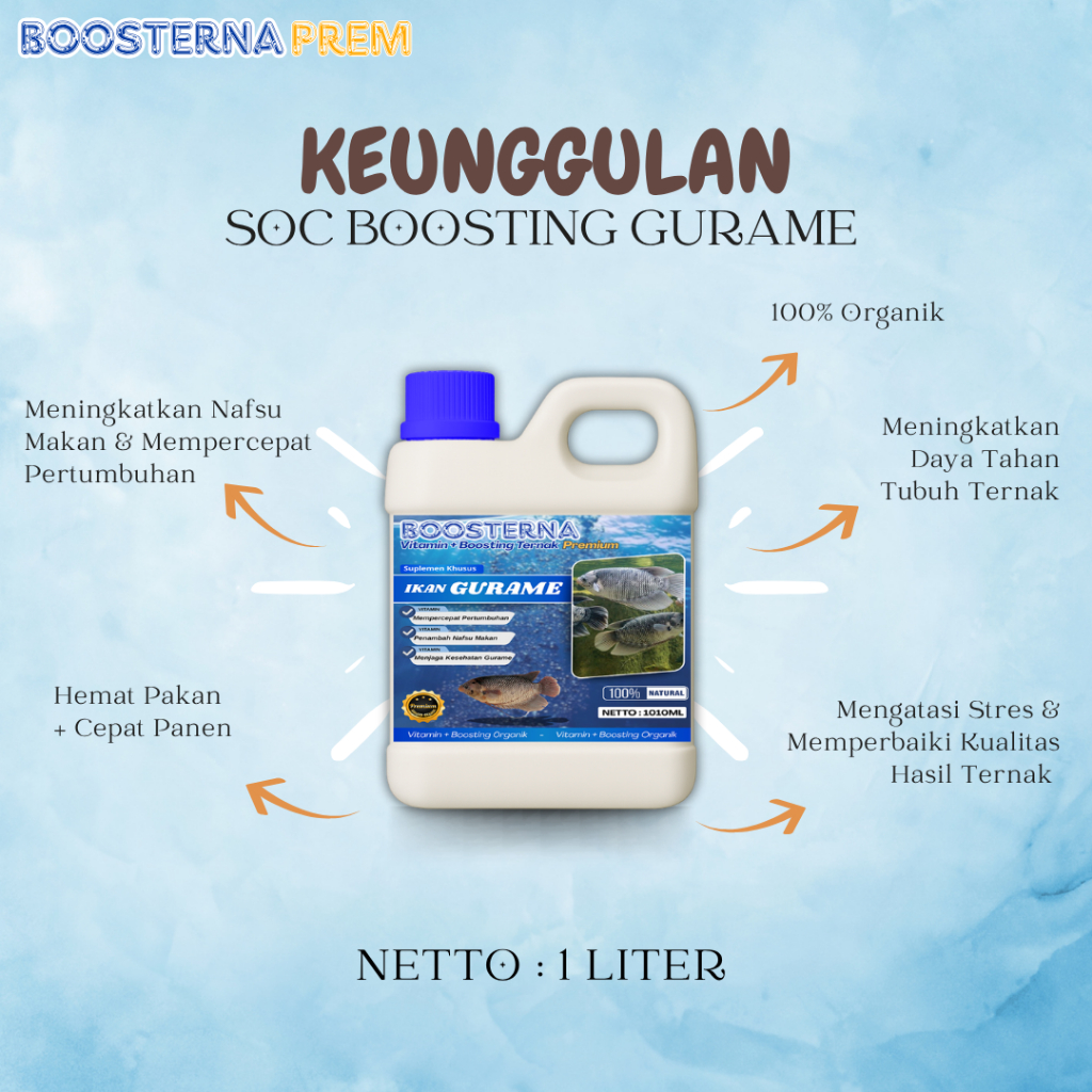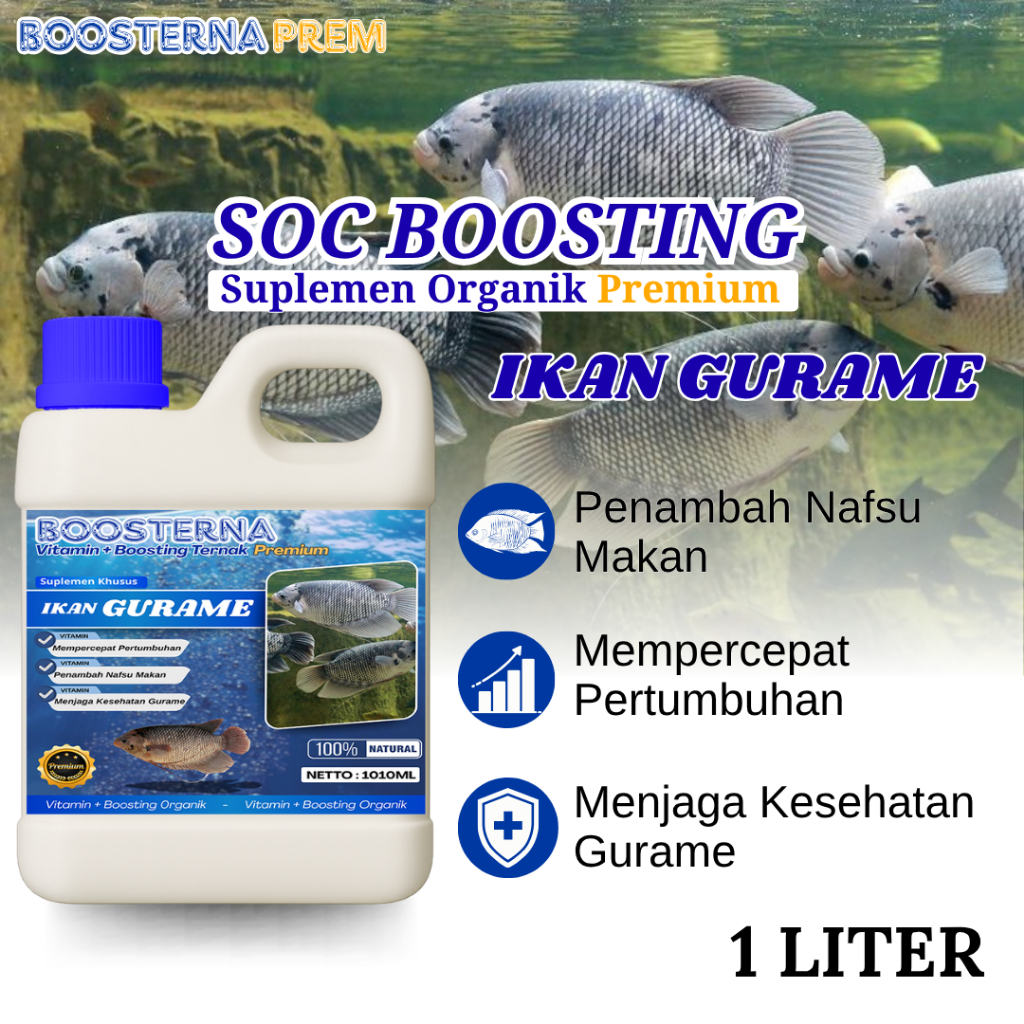 SOC BOOSTING IKAN GURAME Premium, VITAMIN Ikan gurame agar cepat besar 1010ml suplemen pemacu pertumbuhan ikan gurame.