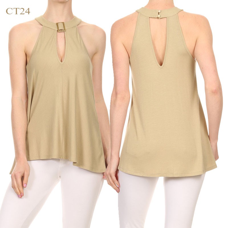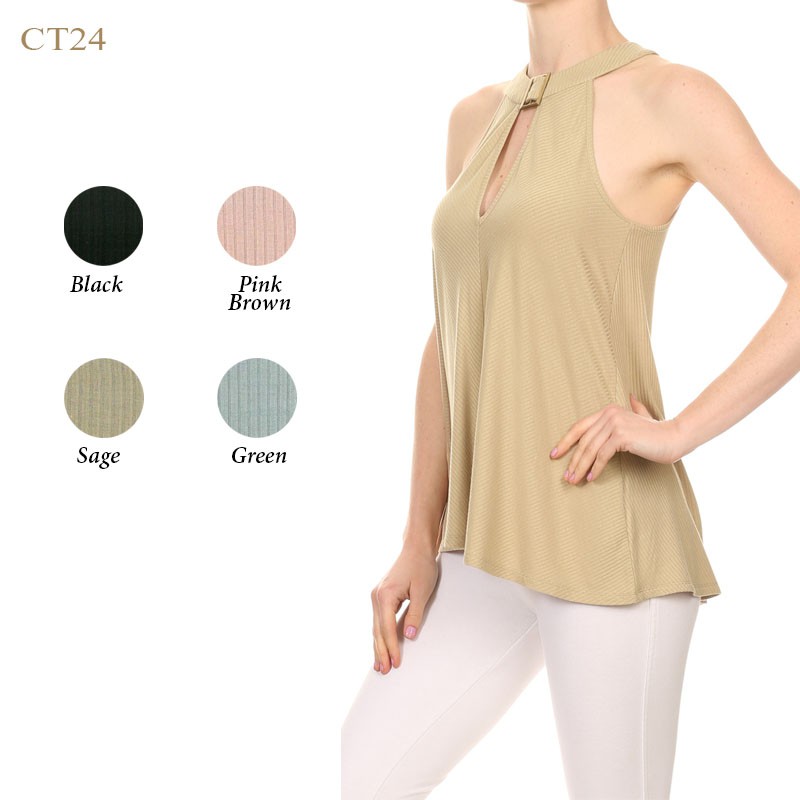 TC24-RKM5- SQUARE PLEATED KEYHOLE TANKTOP ATASAN BLOUSE