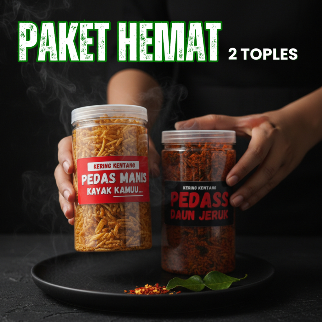 Kering Kentang Mustofa Pedas Daun Jeruk Original Balado Paket Hemat 2 Toples - Camilan Cemilan Snack Lauk Keripik Kering Kentang Mustofa Mustopa Balado Pedas Pedes Manis Jeruk Kentang Goreng Sambal Sambel Kentang Makanan Tradisional Tanpa Pengawet