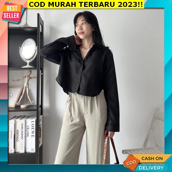 Xora Crop Top Lengan Panjang 3/4 Oversize Jumbo Wanita Korean Style Kekinian / Kemeja Cewek Terbaru Krop Top All Size Fit Ukuran Xxl Bahan Twiscone Adem Ringan Lembut / Atasan Blous Blus Polos Fashion Muslim Perempuan Hi Riabela Kemeja Crop,Kemeja Crop