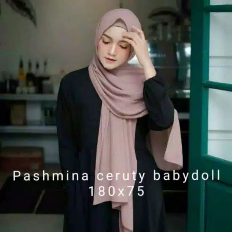 180x75 JILBAB PASHMINA CERUTY BABYDOLL PREMIUM / PASHMINA LOZY CERUTI BABYDOLL TEPI JAHIT