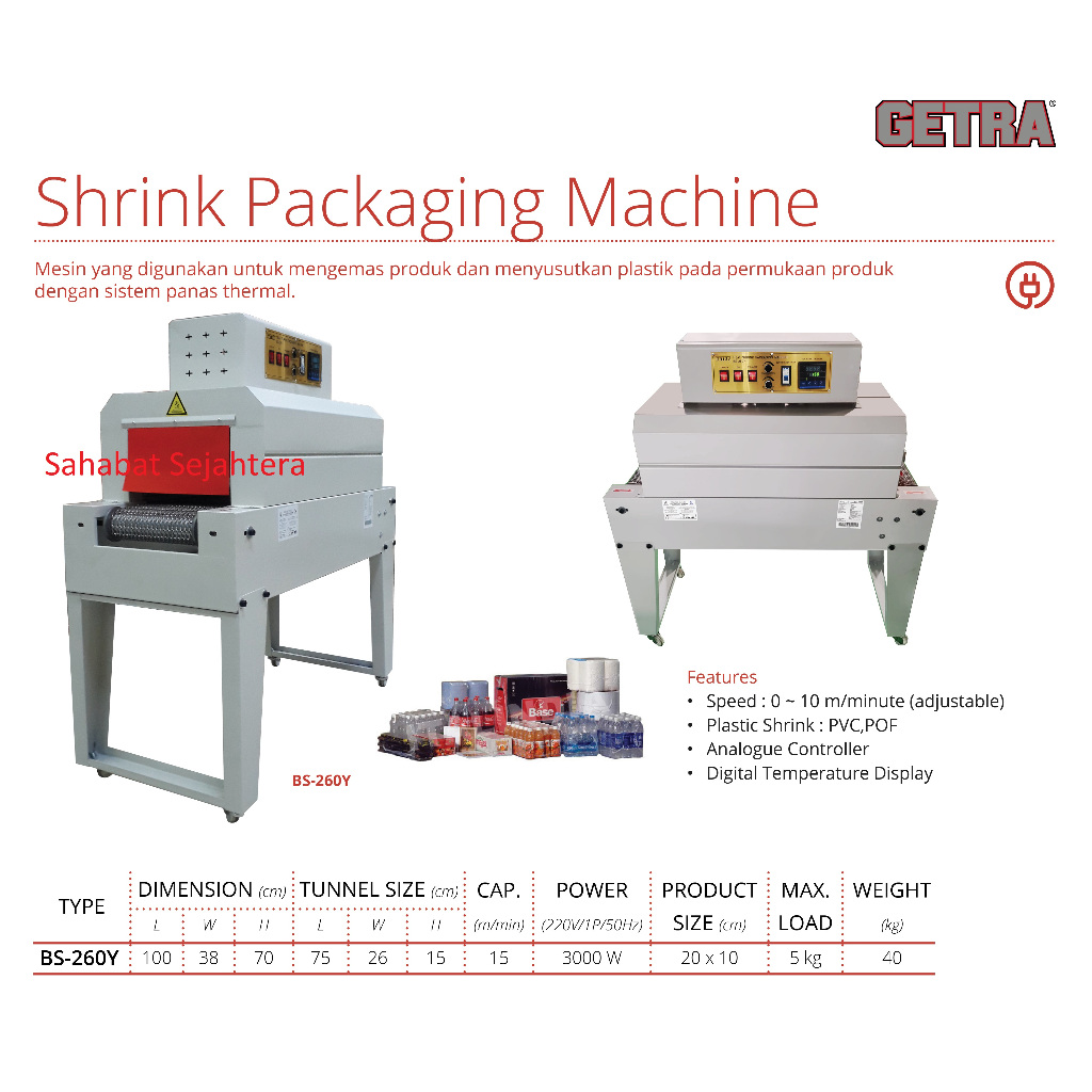 GETRA Shrink Packaging Machine BS-260Y | Mesin Penyusut Plastik Packing Botol/Kotak
