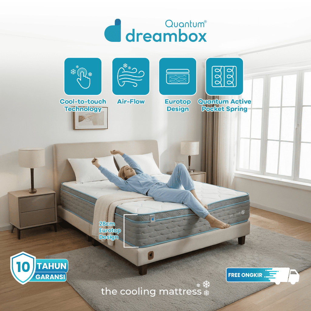 Kasur Dingin Quantum Dreambox AirCool 28cm | Cooling Mattress | Pocket Spring Vakum