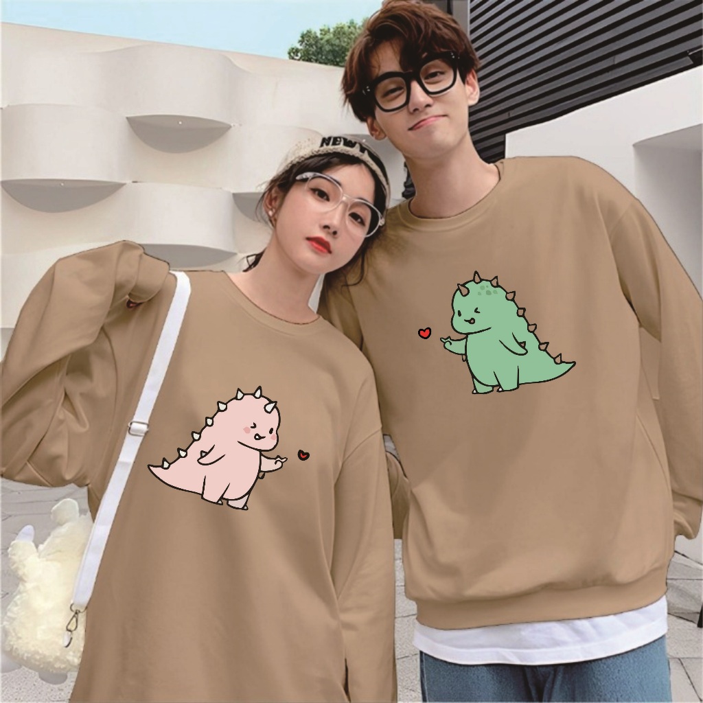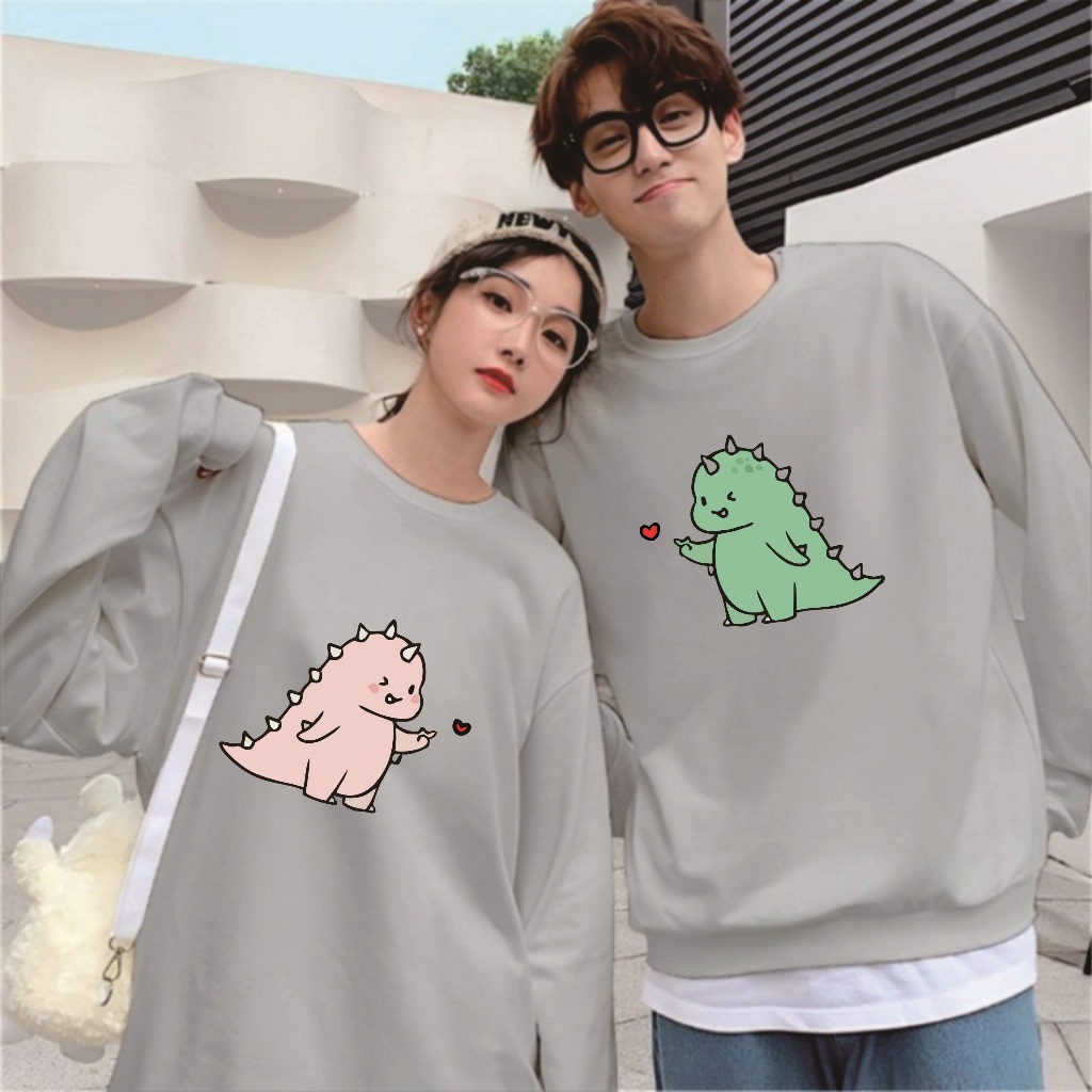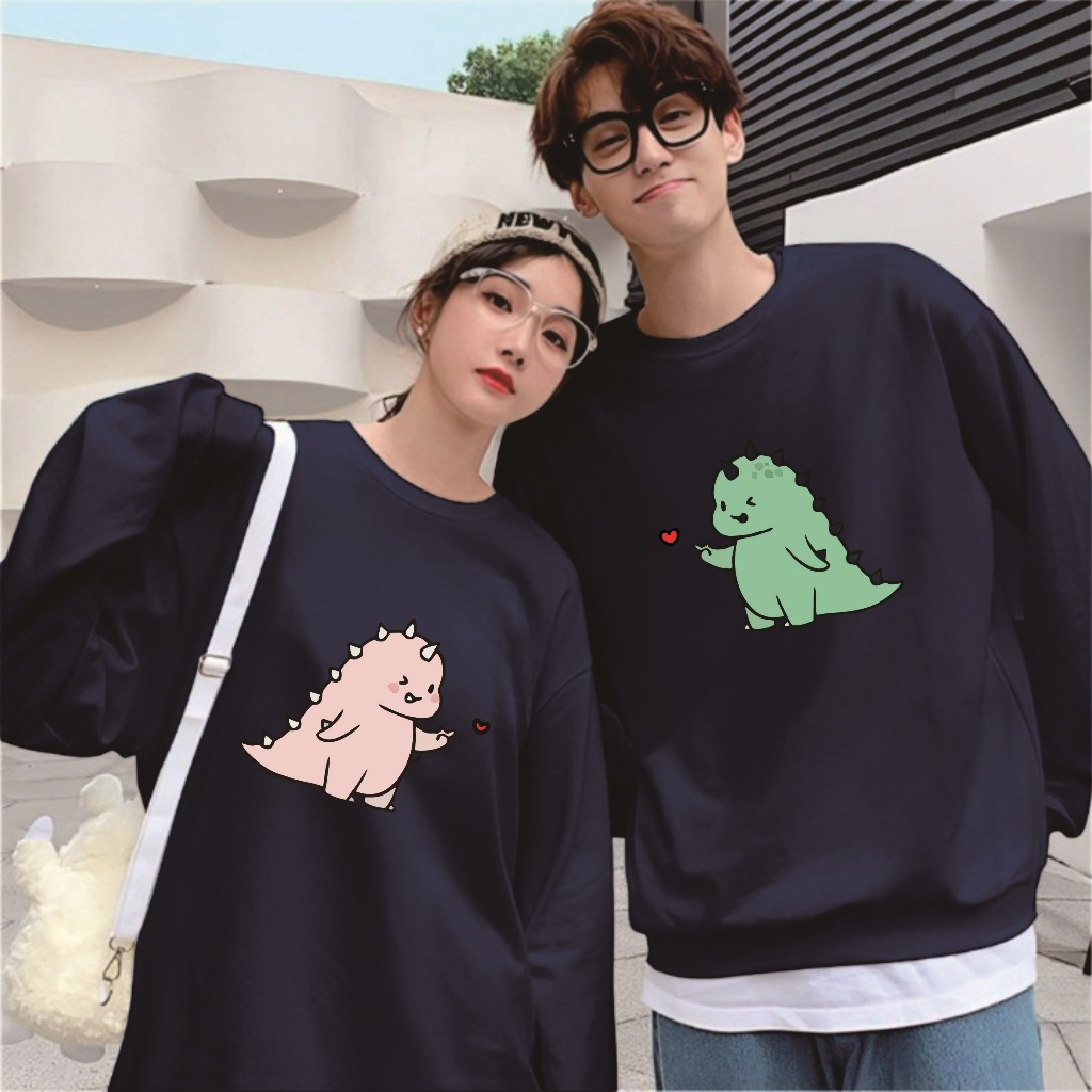 Korean Style Sweater Sweatshirt Crewneck Kapel Motif Distro Couple Dino Give Love Terbaru Terkini Viral Keren Pasangan Sama Ayang Kaos Lengan Panjang Unisex Pria Wanita