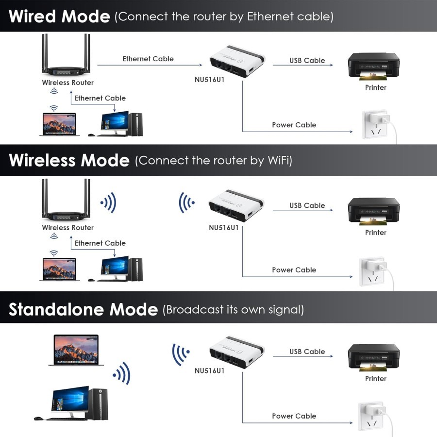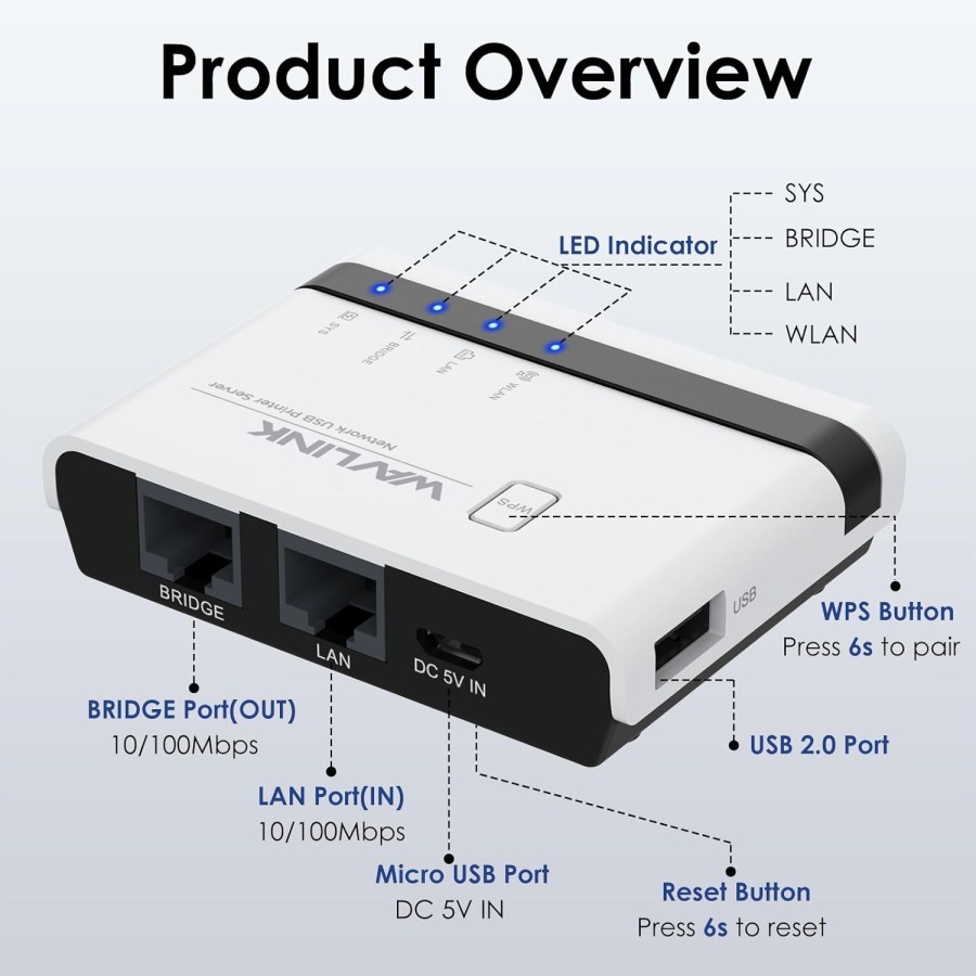 WAVLINK Wireless Print Server, USB WiFi Print Server with 100Mbps LAN & Bridge