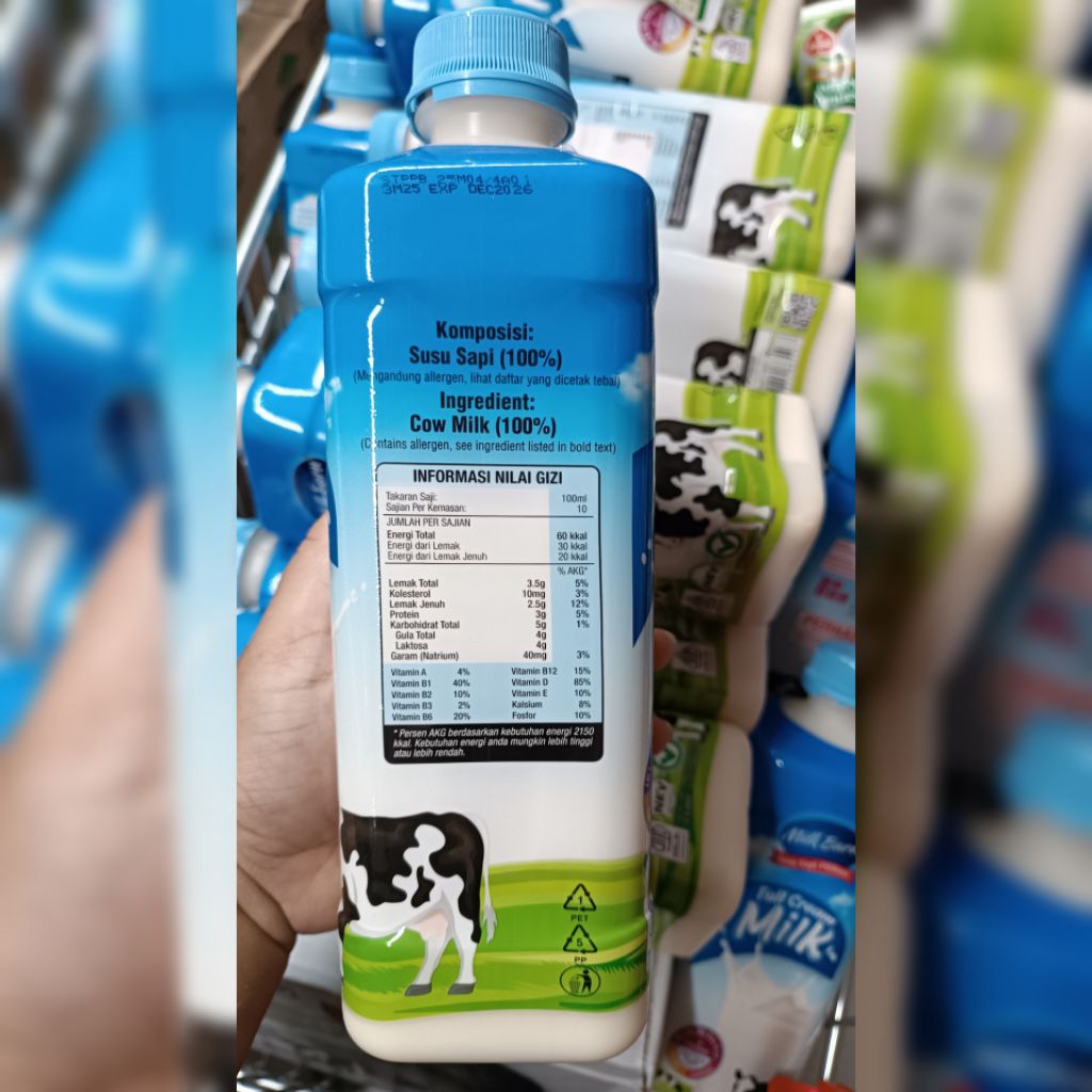 MilkBarn Susu UHT Full Cream 1 Liter Kemasan Botol Setara Diamond