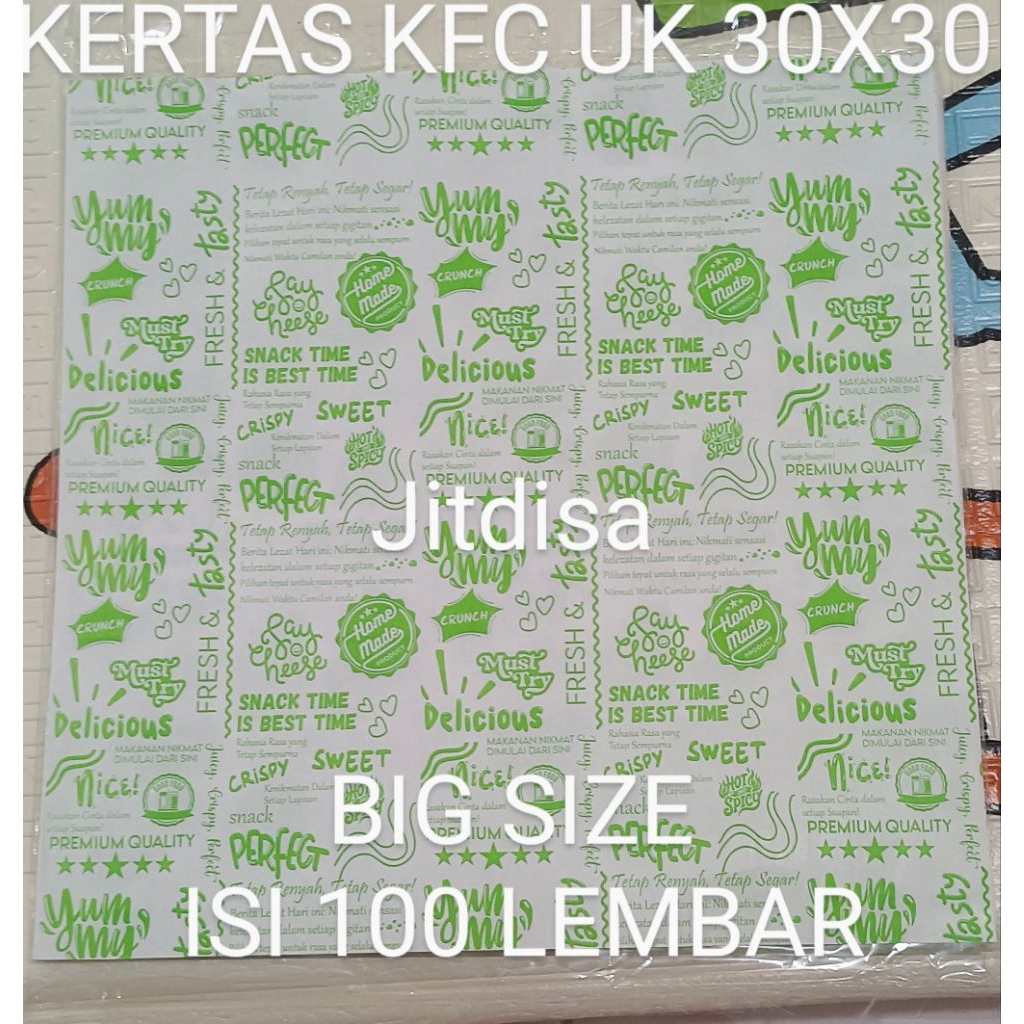 UKURAN GEDE 30X30 CM KERTAS NASI KFC MOTIF YUMMY HIJAU KERTAS MINYAK HAMBURGER ISI 100 LEMBAR