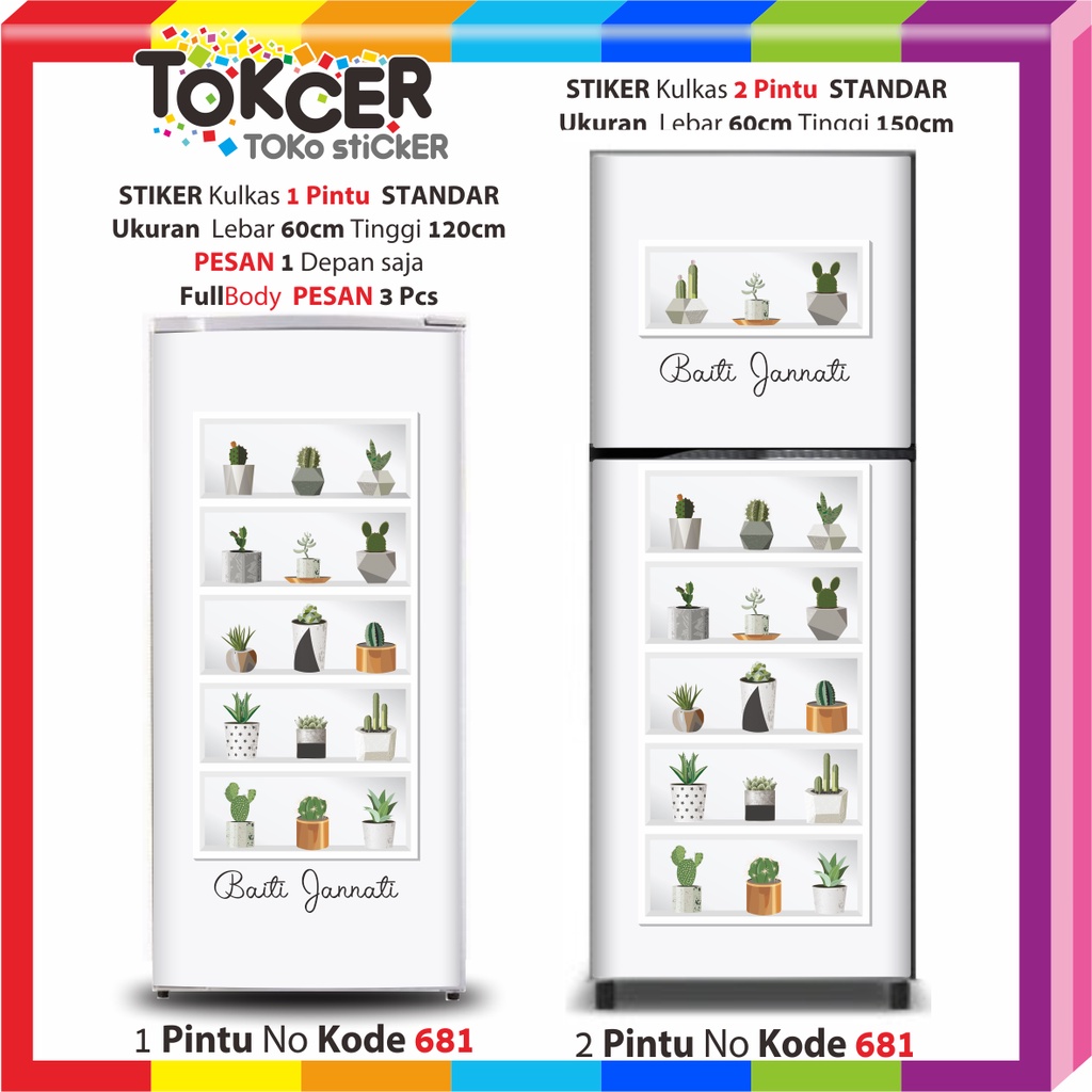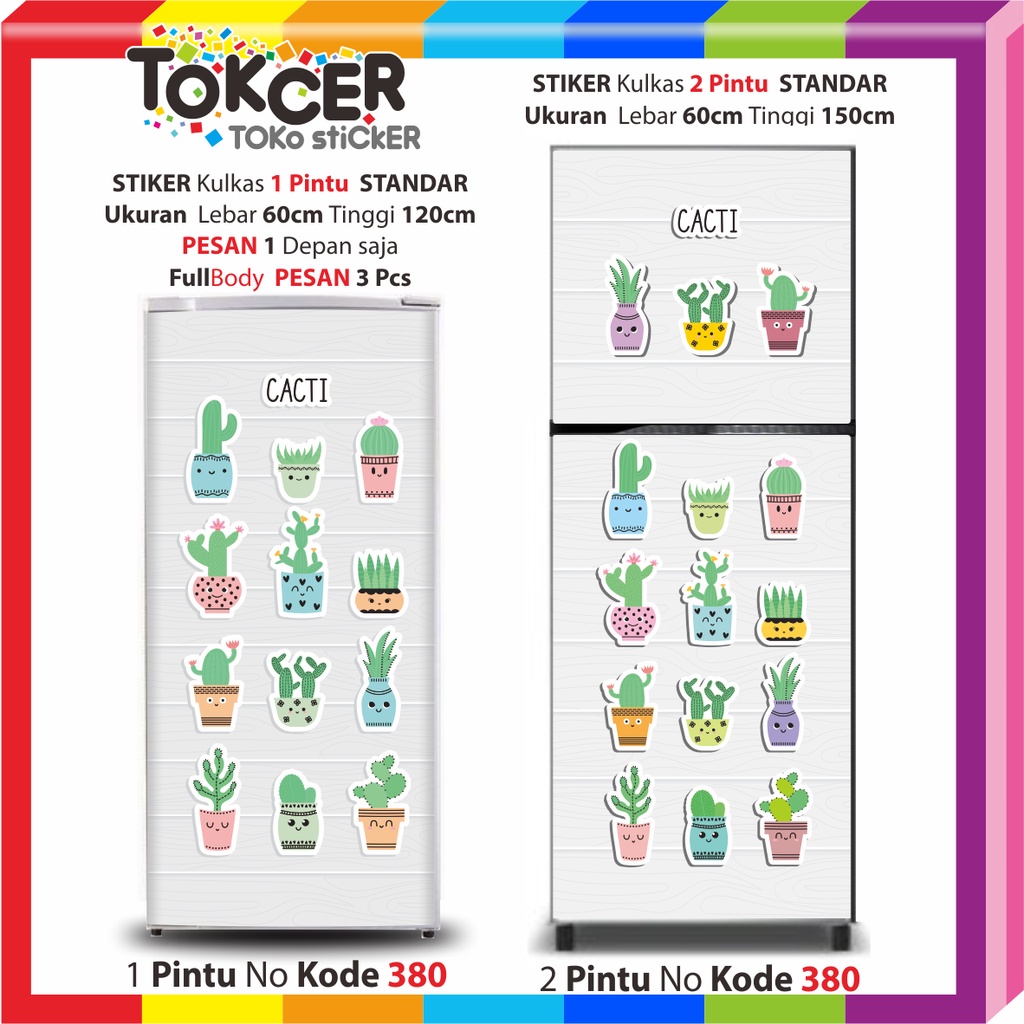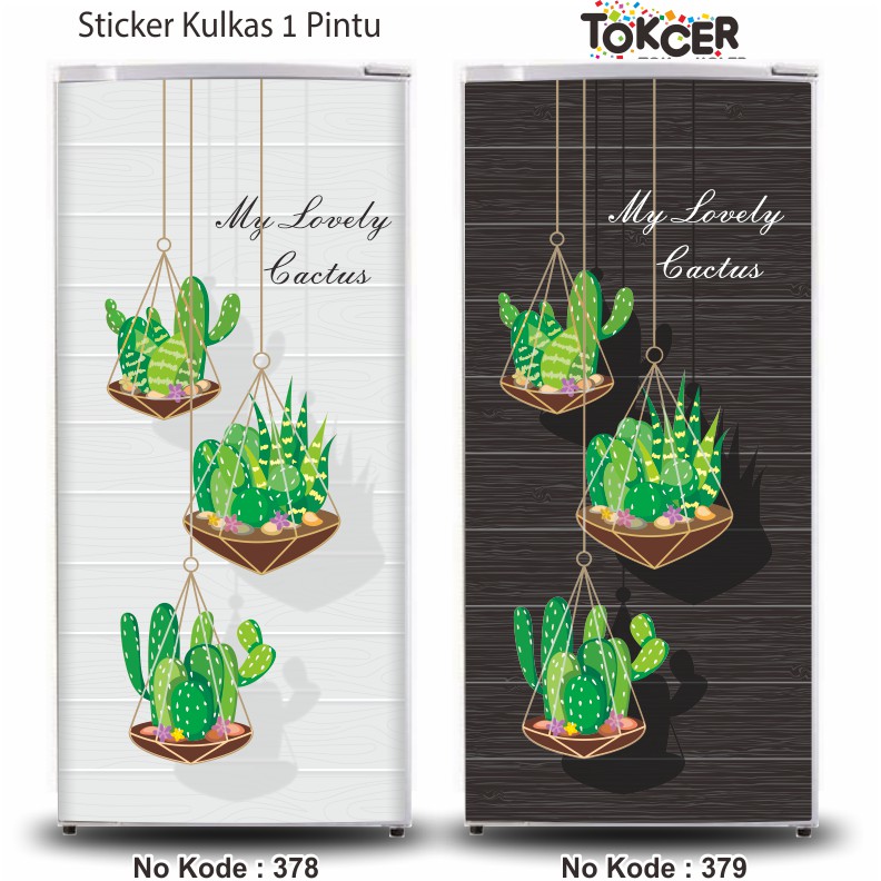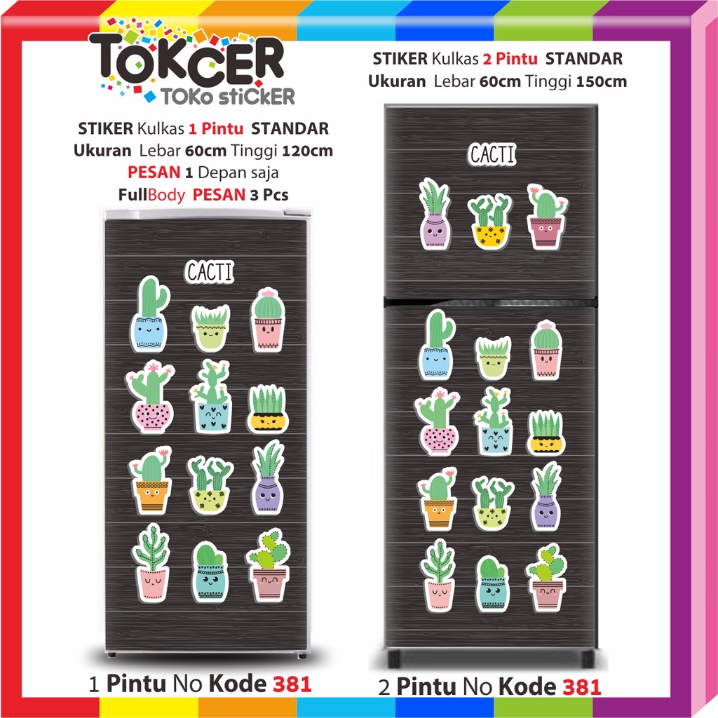 Stiker Kulkas LAMINATING GLOSSY ukuran 1 Pintu atau 2 Pintu Kaktus Anti LUNTUR Anti AIR Tahan LAMA