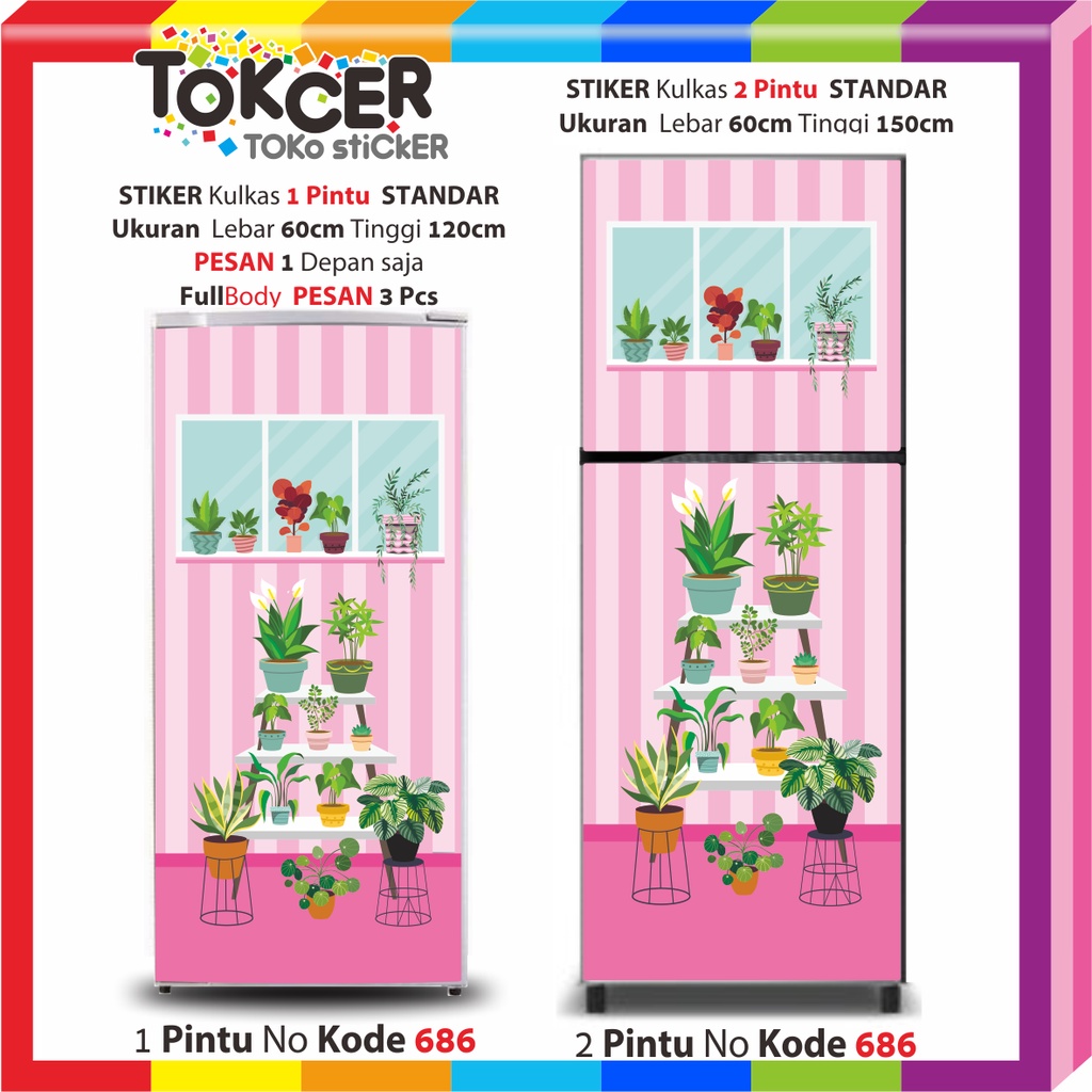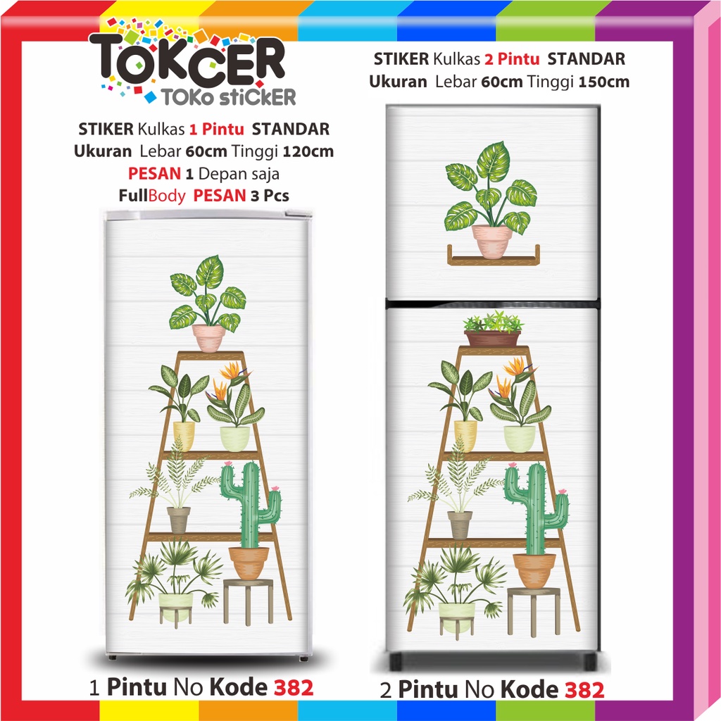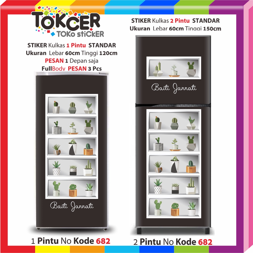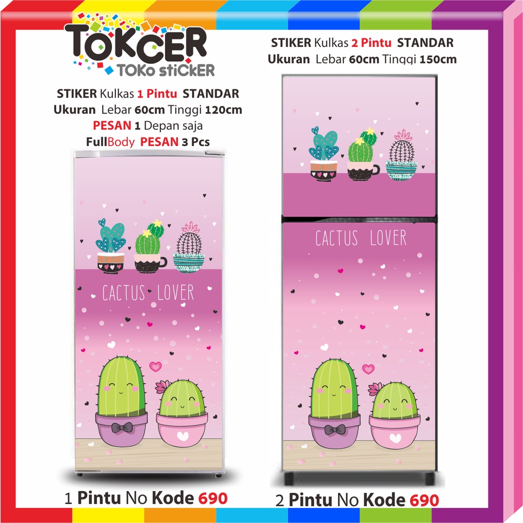 Stiker Kulkas LAMINATING GLOSSY ukuran 1 Pintu atau 2 Pintu Kaktus Anti LUNTUR Anti AIR Tahan LAMA